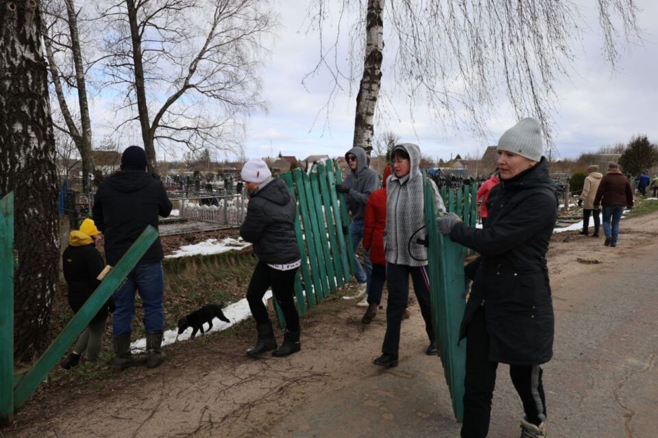 Одним из ключевых мест проведения субботника стало гражданское кладбище по улице Рабцевича. Руководство района – председатель райисполкома Галина Слабодникова и председатель районного Совета депутатов Елена Сакадынец совместно с работниками райисполкома, Кировского УКП «Жилкомхоз» и активистами общественных объединений выполнили демонтаж старого забора и столбиков. Заместитель директора Кировского УКП «Жилкомхоз» Алексей Говядин сообщил, что в данных видах работ приняли участие около 30 человек, демонтировано 450 метров забора, на его месте в скором времени будет установлен новый.