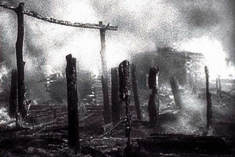 Из книги «Макей и его хлопцы» бывшего партизана отряда А.Кузнецова (Гужева): «В полдень в деревню Костричская Слободка вошли немцы. Они выгнали жителей из хат на широкую клубную площадь. Пустыми глазницами выбитых окон смотрел клуб на притихшую толпу. В толпе сельчан и отец Макея, высокий и ладный чернобородый старик лет пятидесяти пяти. Все с ужасом смотрят на высокого тощего немецкого офицера, что-то кричащего на непонятном языке.