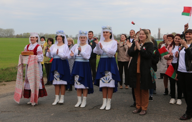 Утром на границе Бобруйского и Кировского районов торжественно встретили участников пробега.