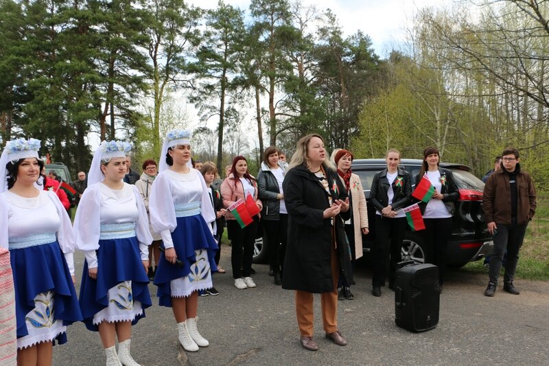 Обращаясь к кировчанам, Анна Дашкевич рассказала: «Областной молодежный патриотический проект «Дорогами Памяти и Славы» сегодня здесь, у вас – на гостеприимной Кировской земле. Мы уже вторую неделю посещаем районы Могилевской области, проехали от Хотимска до Осипович. В каждом из населенных пунктов, где мы бываем, наша молодежь вместе с местным населением отдает дань памяти тем, чья жизнь была искалечена войной, оборвана фашистскими захватчиками. Мы участвуем в диалоговых площадках, митингах, экскурсиях, закладках парков Памяти и Славы, посещении знаковых объектов. Девиз нашей молодежи звучит так: «Наша сила – в единстве!». Сегодня, как никогда, мы должны сплотиться, объединиться и одним большим едиными фронтом противостоять попыткам исказить нашу историю, отобрать у наших дедов и прадедов их Победу, их память и славу. Мы – молодежь Могилевщины – поколение потомков народа-победителя, и мы гордимся этим. Мы – за Великую Победу, за Родину, за Беларусь!».