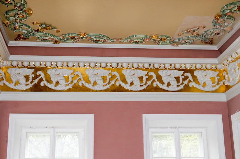 Во дворце продолжаются реставрационные работы, за их ходом наблюдали участники проекта, а также осмотрели помещения, где реставрация практически завершена. Интерес вызвали экспонаты местного музея.