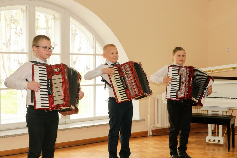 Затем учащиеся Жиличской детской школы искусств, которая находится в стенах дворца, показали гостям концертную программу, посвященную 77-й годовщине Великой Победы.
