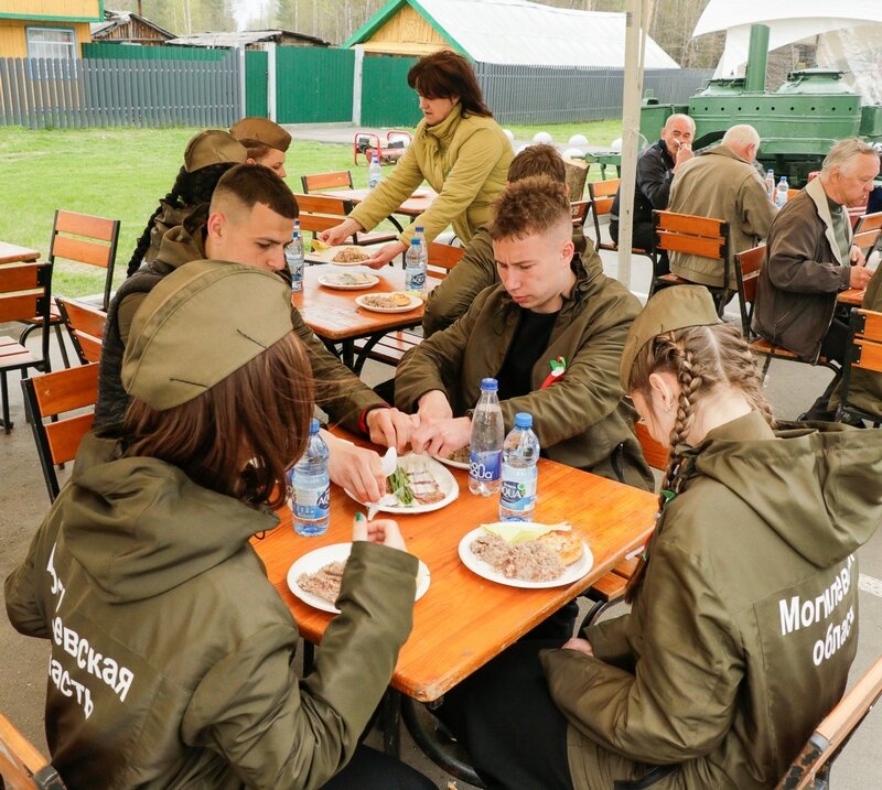 По завершении мероприятий молодых людей пригласили отведать солдатской каши из полевой кухни и угоститься кировскими смаженками с горячим чаем. Далее автоколонна направилась в сторону соседнего Быховского района.