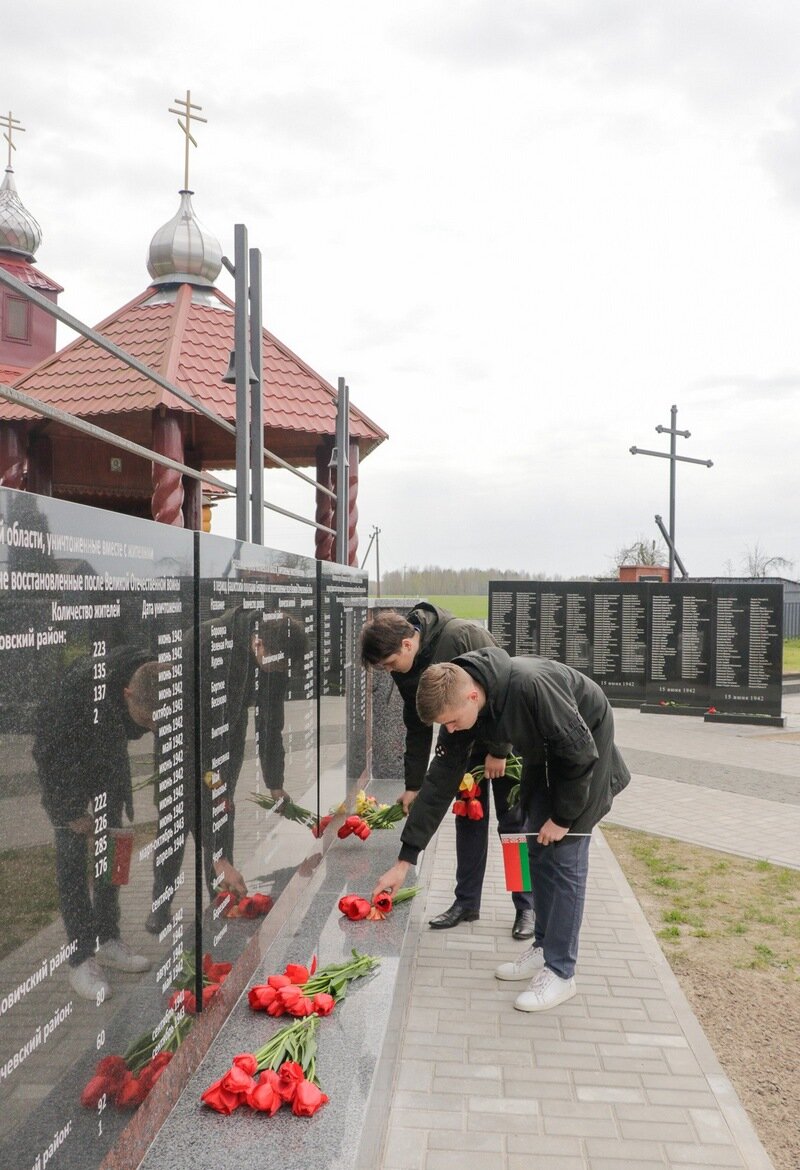 Далее частники областного молодежного патриотического проекта «Дорогами Памяти и Славы» посетили мемориальный комплекс «Памяти сожженных деревень Могилевской области» в Борках.