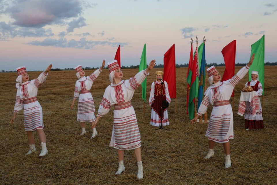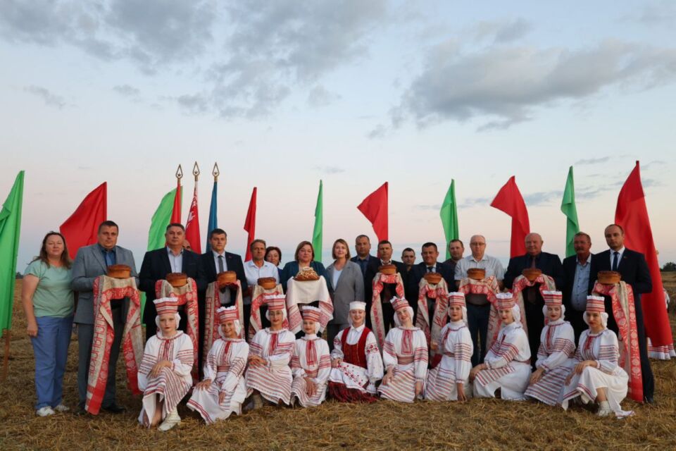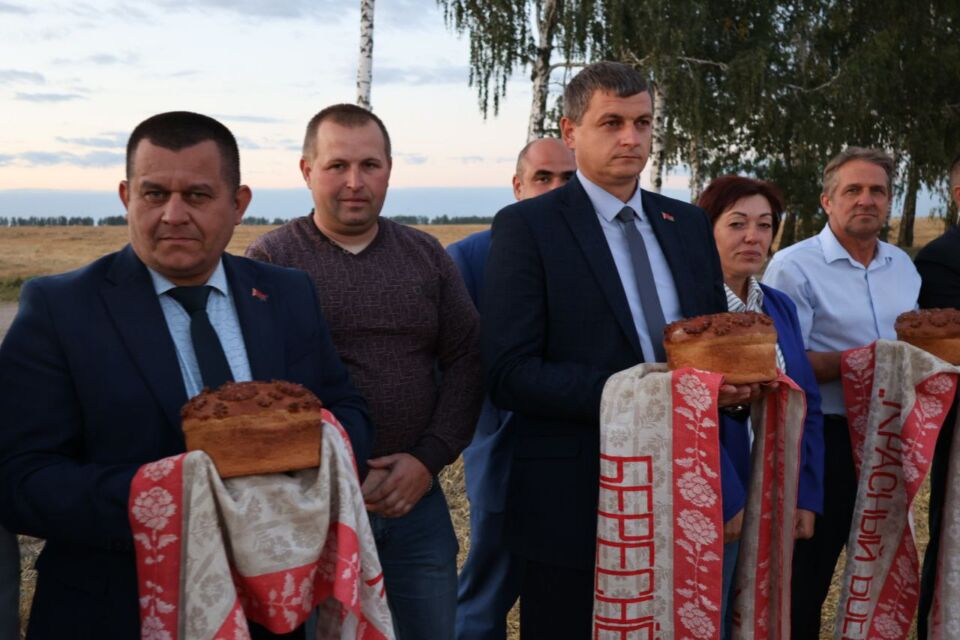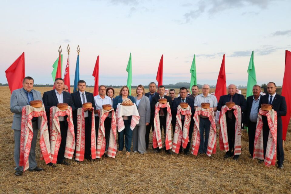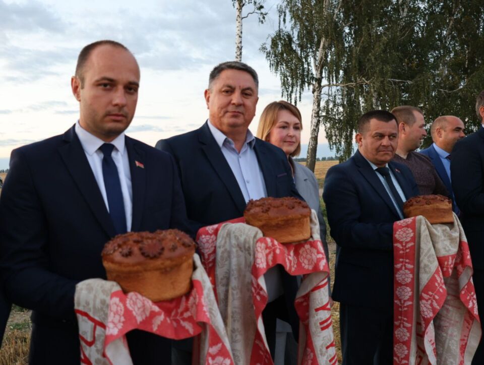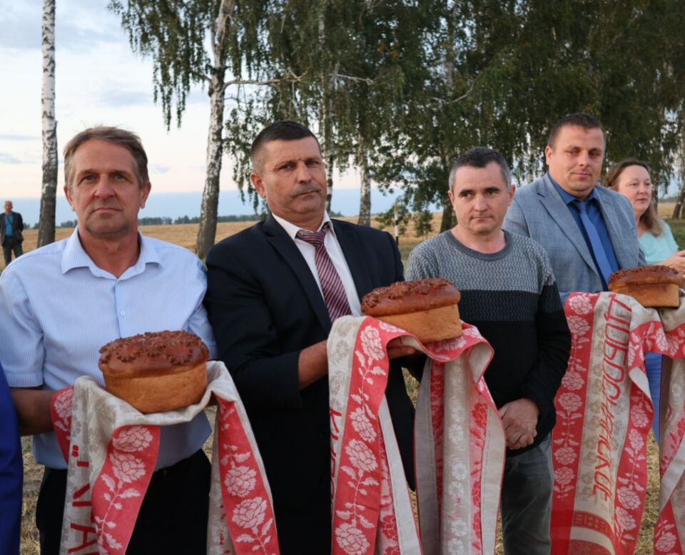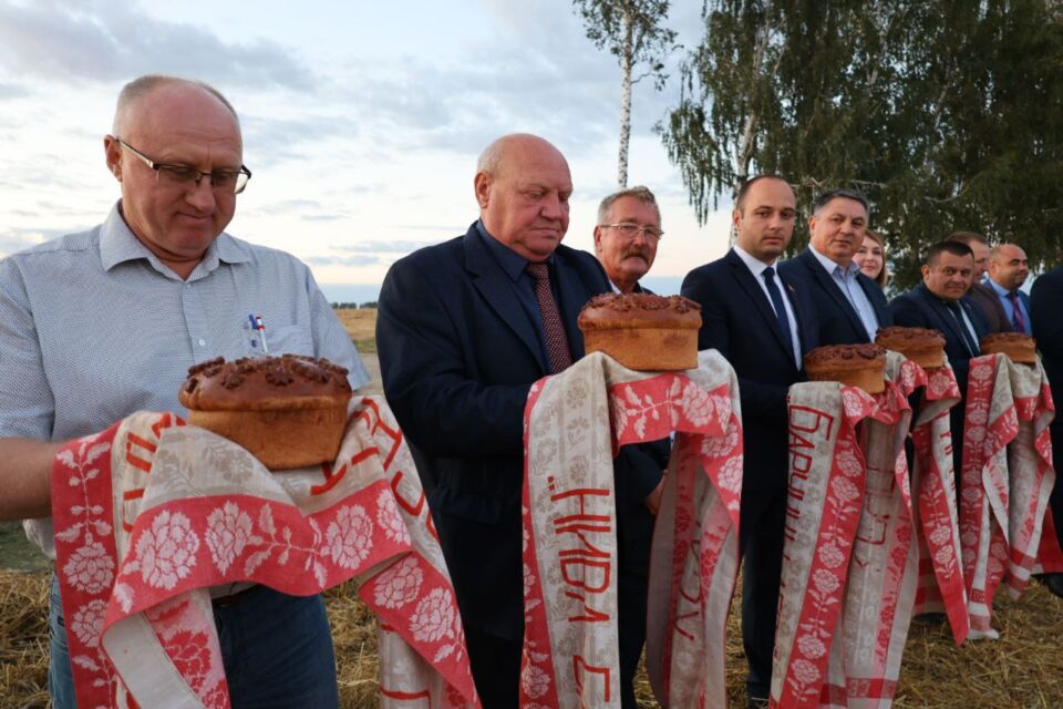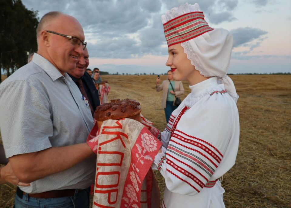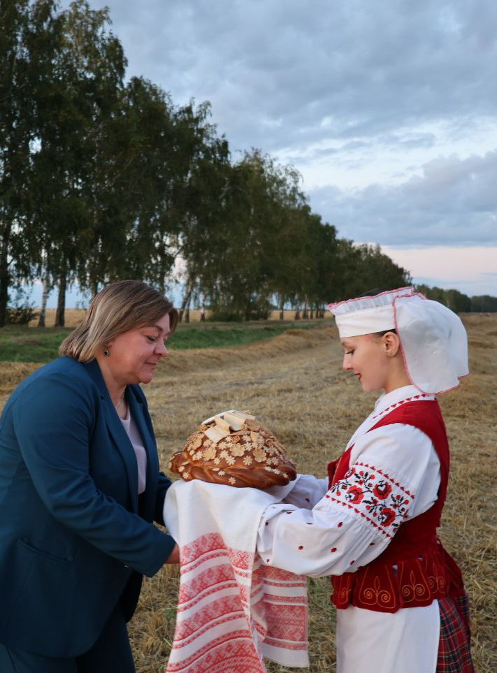 Председателю Кировского райисполкома Галине Слабодниковой вручили каравай из муки нового урожая от председателя Могилёвского облисполкома Анатолия Исаченко.