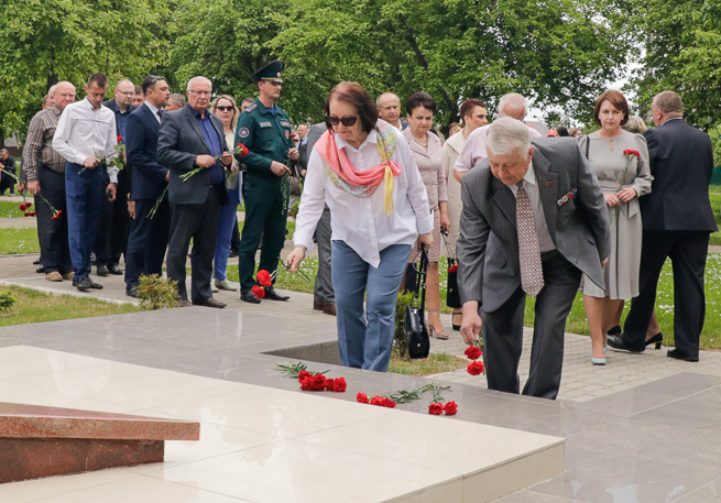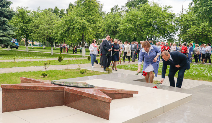 Около братской могилы воинов и партизан, погибших в годы Великой Отечественной войны, собрались представители районной власти во главе с председателем райисполкома Михаилом Гулым, председателем районного Совета депутатов Галиной Слабодниковой, руководители и представители трудовых коллективов, районных структур общественных объединений, молодежь. Для участия в торжестве были приглашены Почетные граждане Кировского района Александр Серяков и Надежда Каранкевич, ветеран труда Николай Подъяловский.