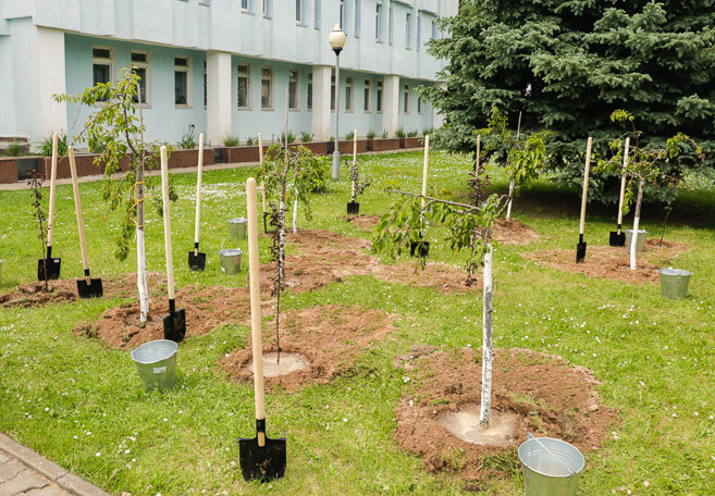 С каждым годом расцветает наша Кировщина, ее жители принимают активное участие в благоустройстве, озеленении населенных пунктов. В День города кировчане продолжили эту традицию: в честь 20-летнего юбилея в этом знаковом для жителей райцентра месте было высажено 20 деревьев – яблонь, вишен, как символ плодородия и процветания, их расположили в виде цифры 20.