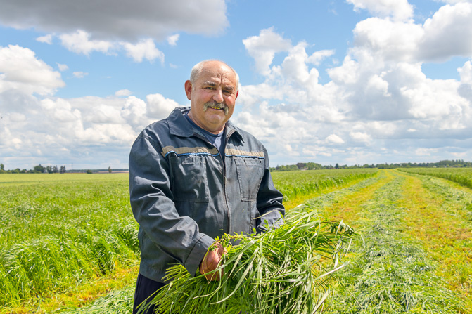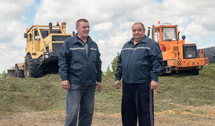 За такімі вопытнымі і адказнымі земляробамі імкнуцца і працаўнікі больш маладога ўзросту – такія, як Пётр Мухін. Разам з Іванам Салановічам у іх атрымаўся спрытны дуэт касцоў, палеткі, на якіх ім неабходна было скасіць траву, займалі 75 га. Засаджаны яны былі травяной сумессю, сярод якіх – злакавыя, фестулоліум і іншыя культуры.