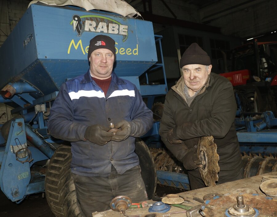 Завяршаецца рамонт асноўнага пасяўнога агрэгата “Rabe”. Каля яго завіхаюцца адказныя працаўнікі Сяргей Зазерскі і Андрэй Слуцкі. Апошні з названых якраз і будзе задзейнічаны на сяўбе. Летась ён выдатна сябе праявіў на гэтым участку: на новым трактары – магутным “Беларус-3522” ён пашчыраваў так, што стаў лаўрэатам раённага спаборніцтва на сяўбе і яравых, і азімых збожжавых. Сёлета механізатар будзе імкнуцца не зніжаць высокую планку.