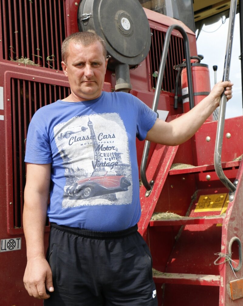 Валянцін Сулімскі працуе на кормаўборачным камбайне