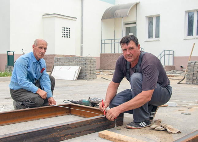 Электрагазазваршчык Сяргей Лапухін и муляр Сяргей Гаршкоў.