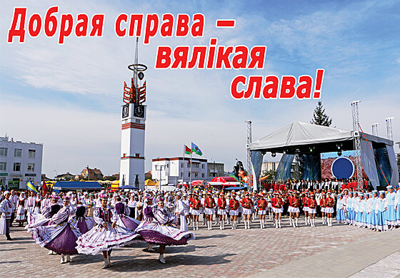 Гучнымі апладыментамі была сустрэта дэлегацыя гаспадароў сёлетніх “Дажынак”, прадстаўнікоў Кіраўшчыны, якую ўзначальваў першы намеснік старшыні райвыканкама Уладзімір Царыкаў. У бягучым годзе на ўборцы збожжавых у раёне было за-дзейнічана больш за 70 экіпажаў, кожны з 44 намалаціў больш за 1 тыс. тон збожжа.