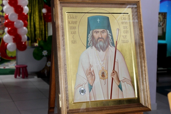 Затым быў адслужаны малебен на пачатак добрай справы перад іконай Іаана Шанхайскага і Сан-Францыскага з часткай яго святых мошчаў.