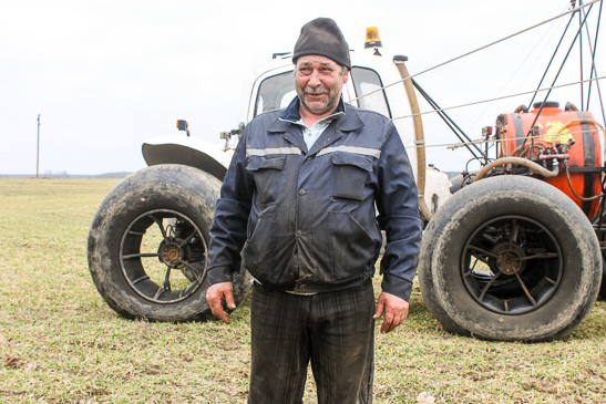 З раніцы і да змяркання па палетках хутка “бегае” “Раса”: за рулём – вопытны механізатар Аляксандр Казека. Падкормку пачалі толькі калі расліны ўступілі ў неабходную фазу: каб мець максімальны эфект ад унясення ўгнаенняў. На рахунку Аляксандра Фёдаравіча больш за 250 га апрацаваных пасяўных плошчаў з рознымі культурамі.