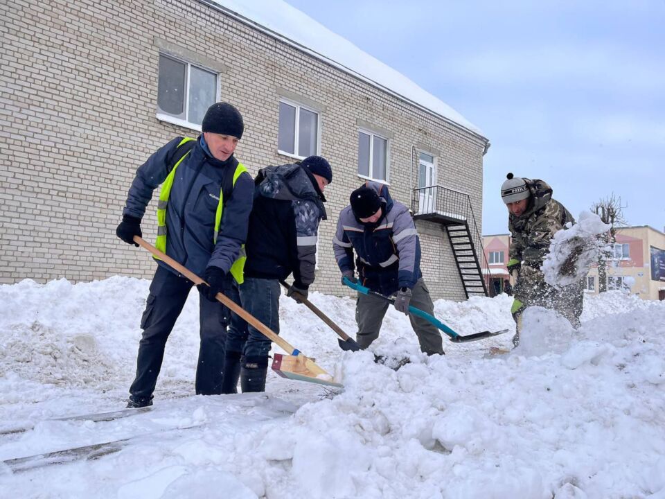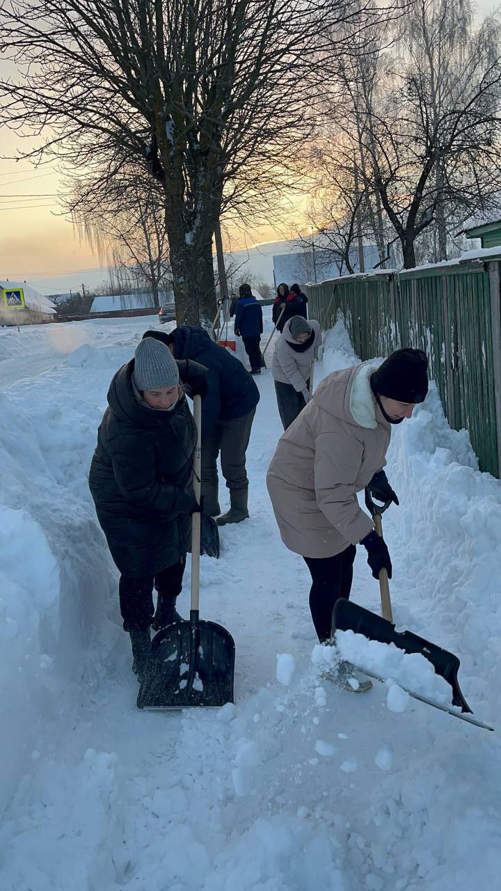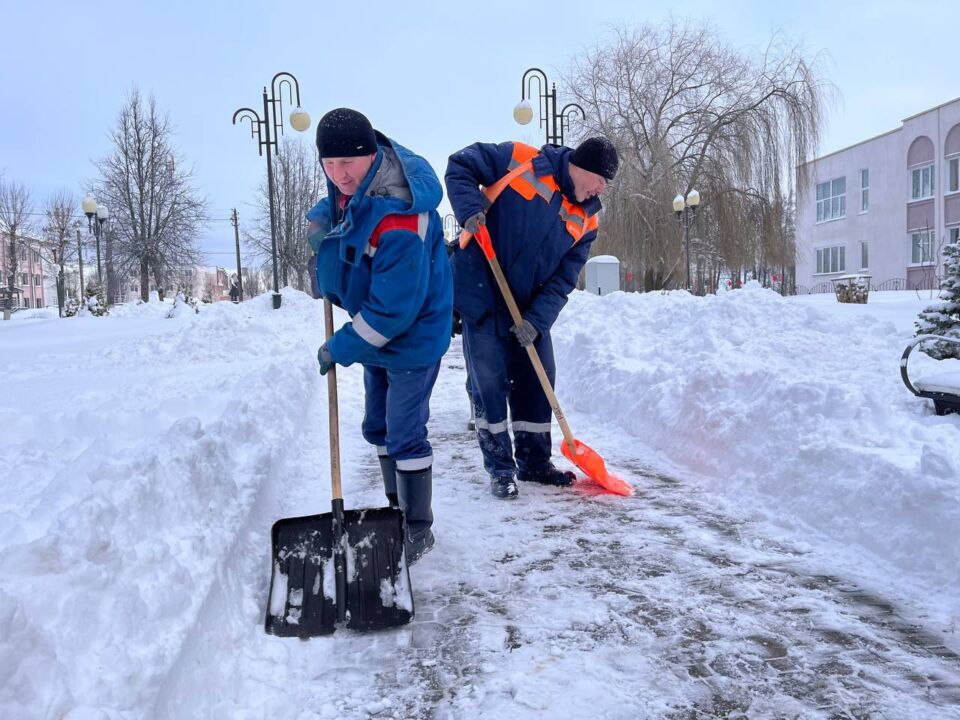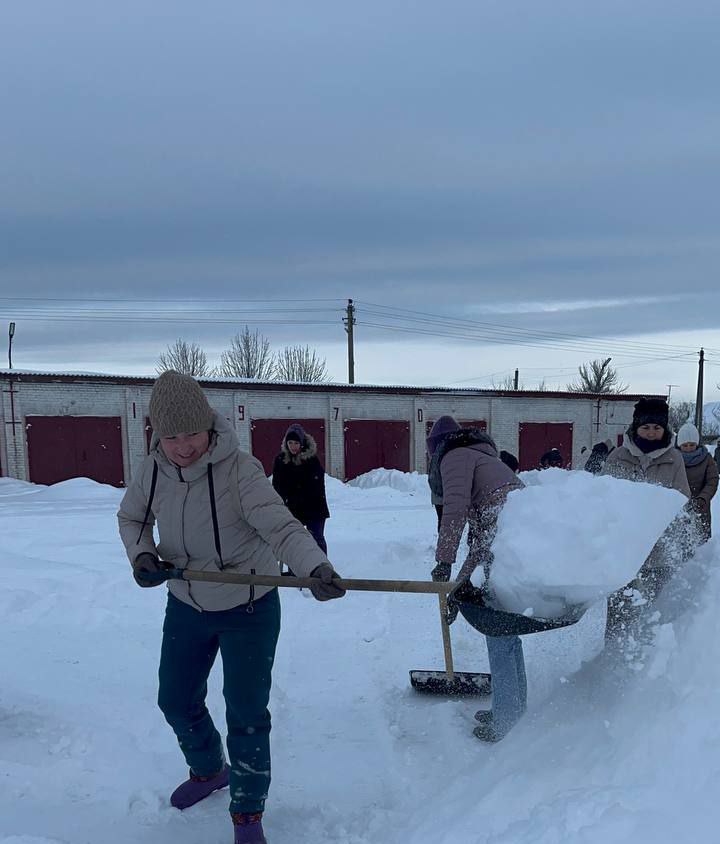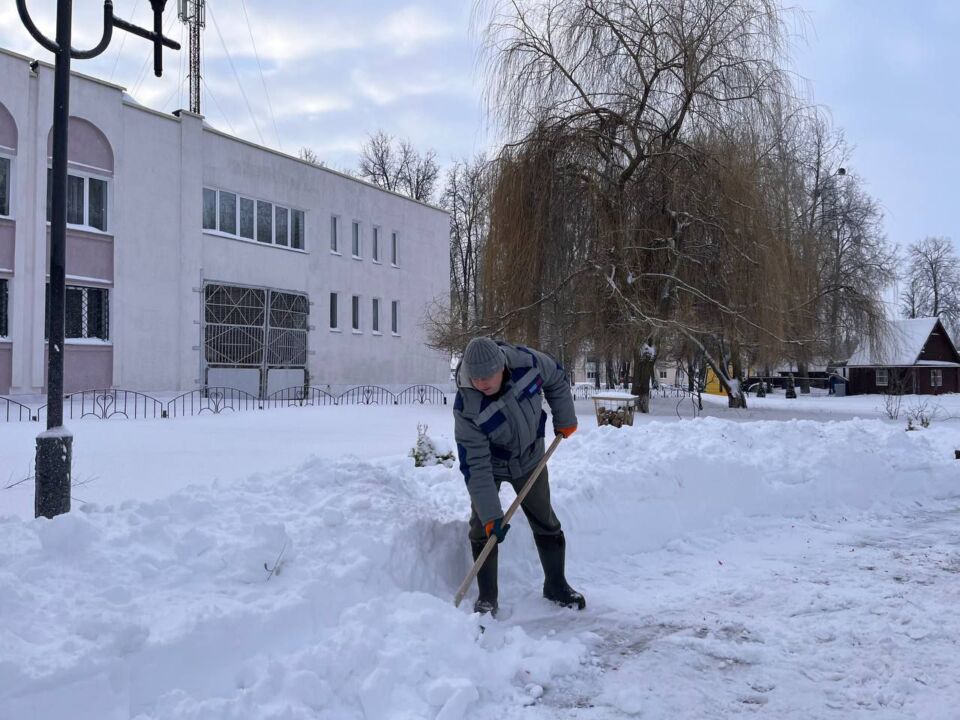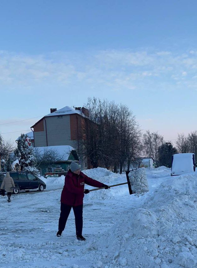 Работники, работающая молодёжь, в том числе молодые специалисты районной газеты «Кіравец» присоединились к челленджу по уборке снега: оказали помощь коммунальной службе по очистке тротуара по улице Пушкинской райцентра.