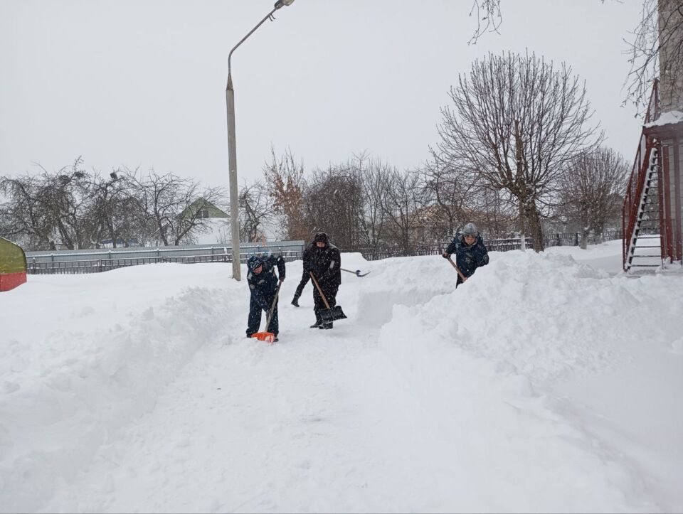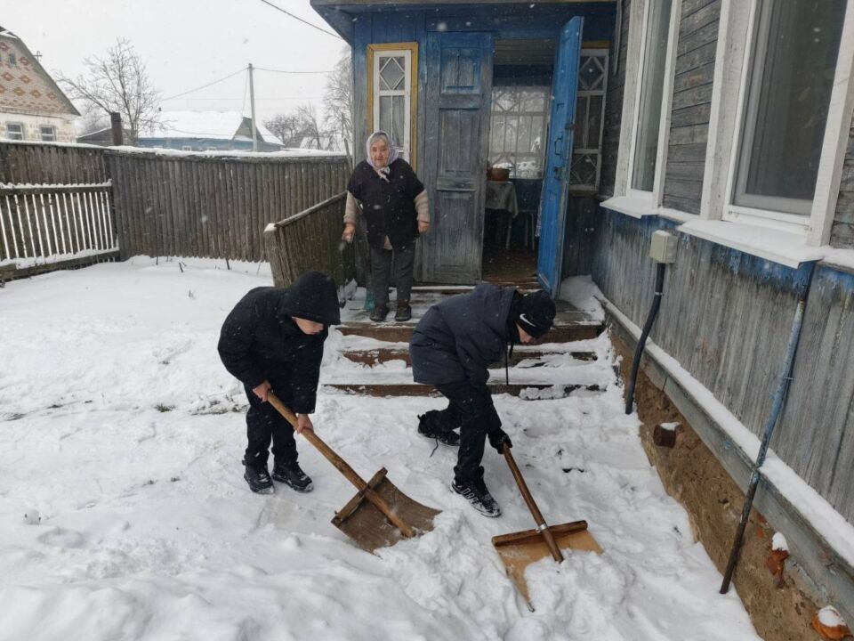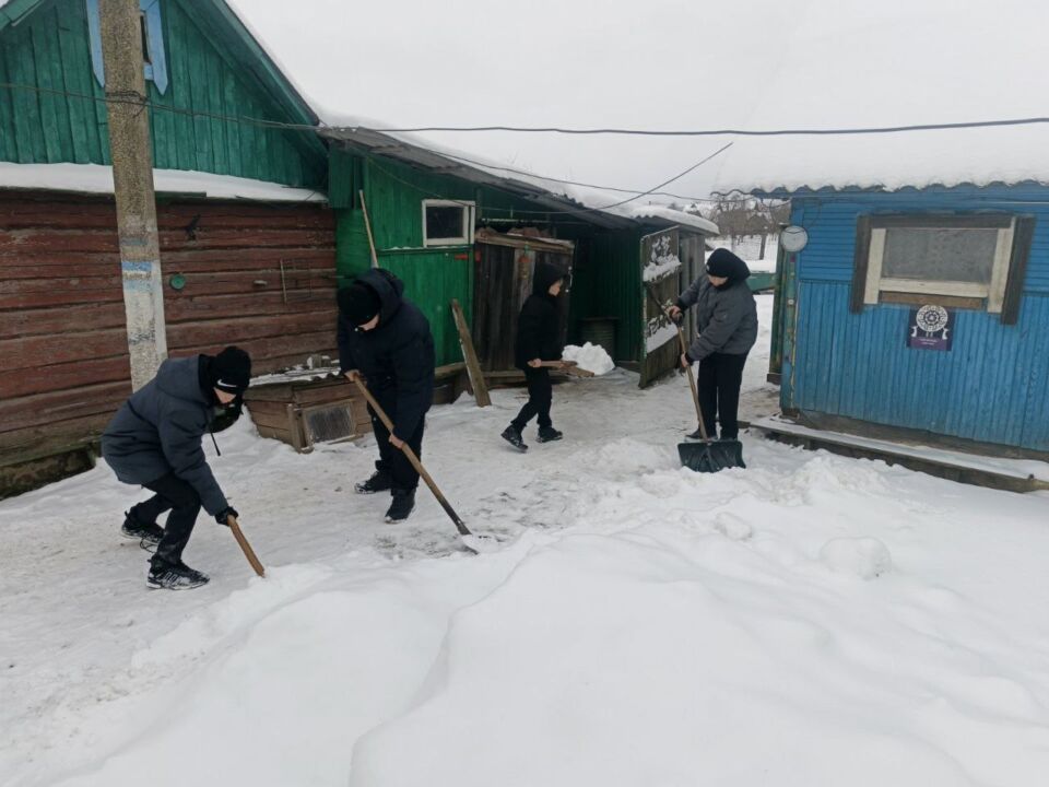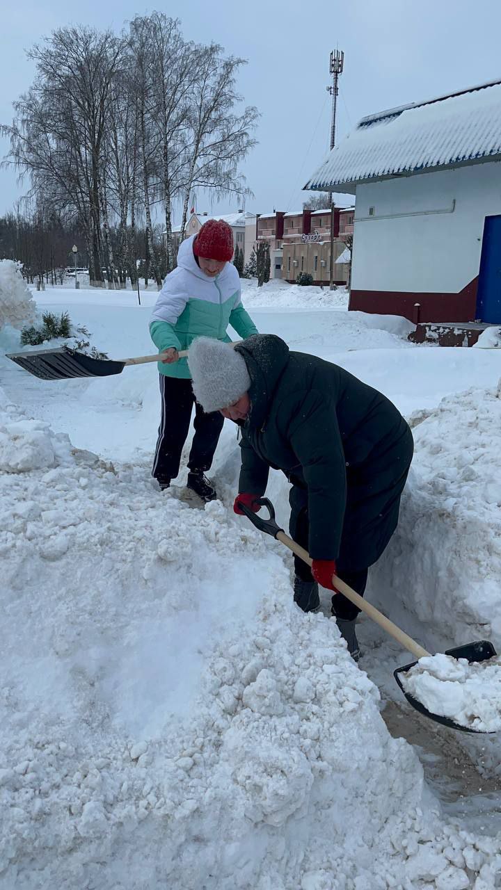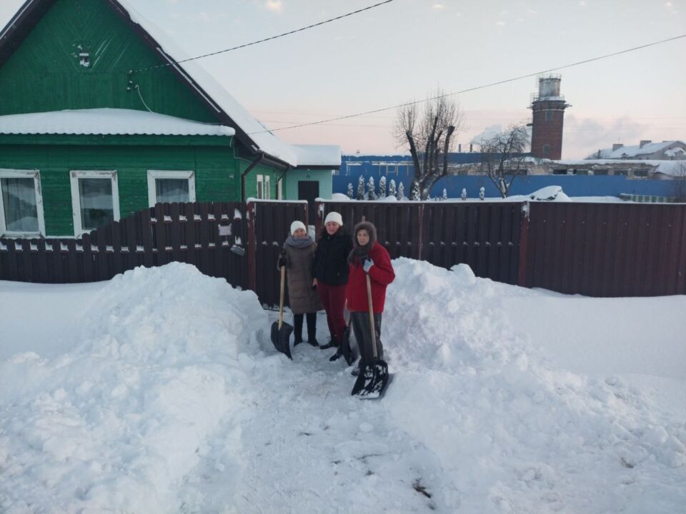 Трудовой десант из числа работников Кировского райисполкома помог одной из жительниц по улице Пушкинской в райцентре очистить от снега двор и прилегающую территорию.