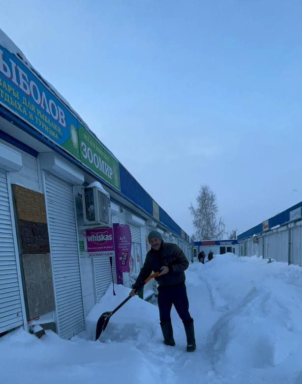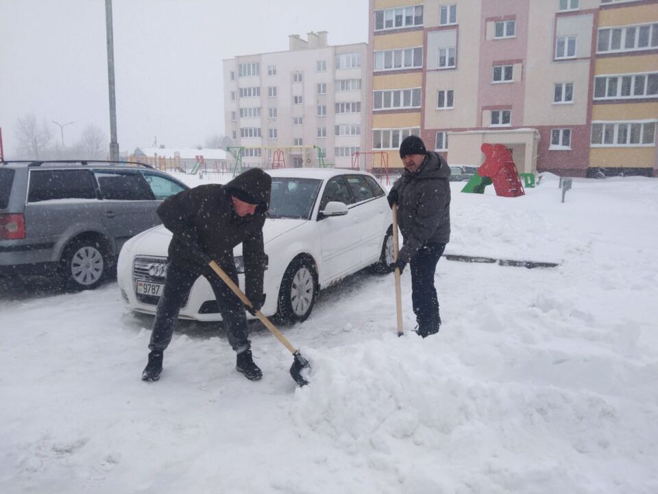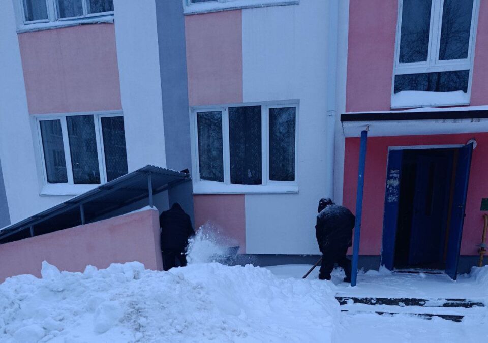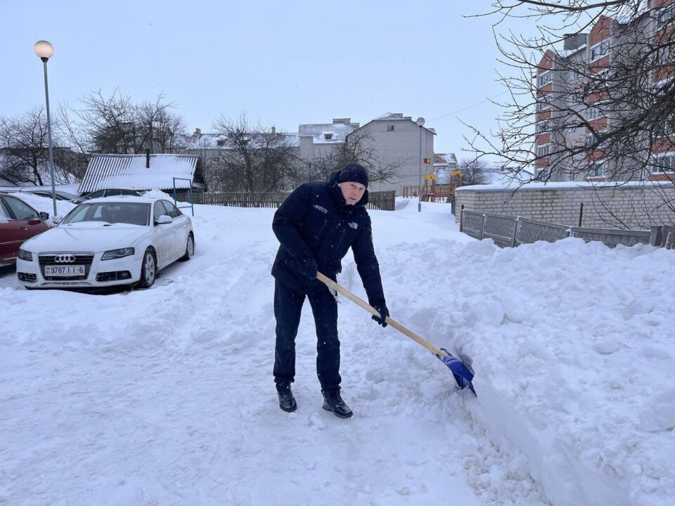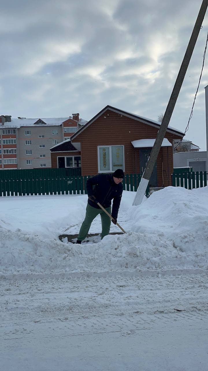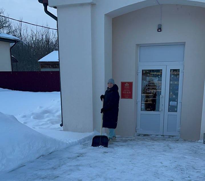 Сотрудники магазина «Евроопт» присоединились к #челленджу по уборке снега на территории торгового объекта и прилегающей к ней.