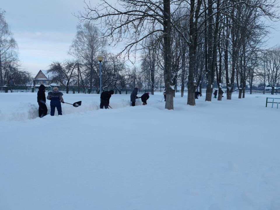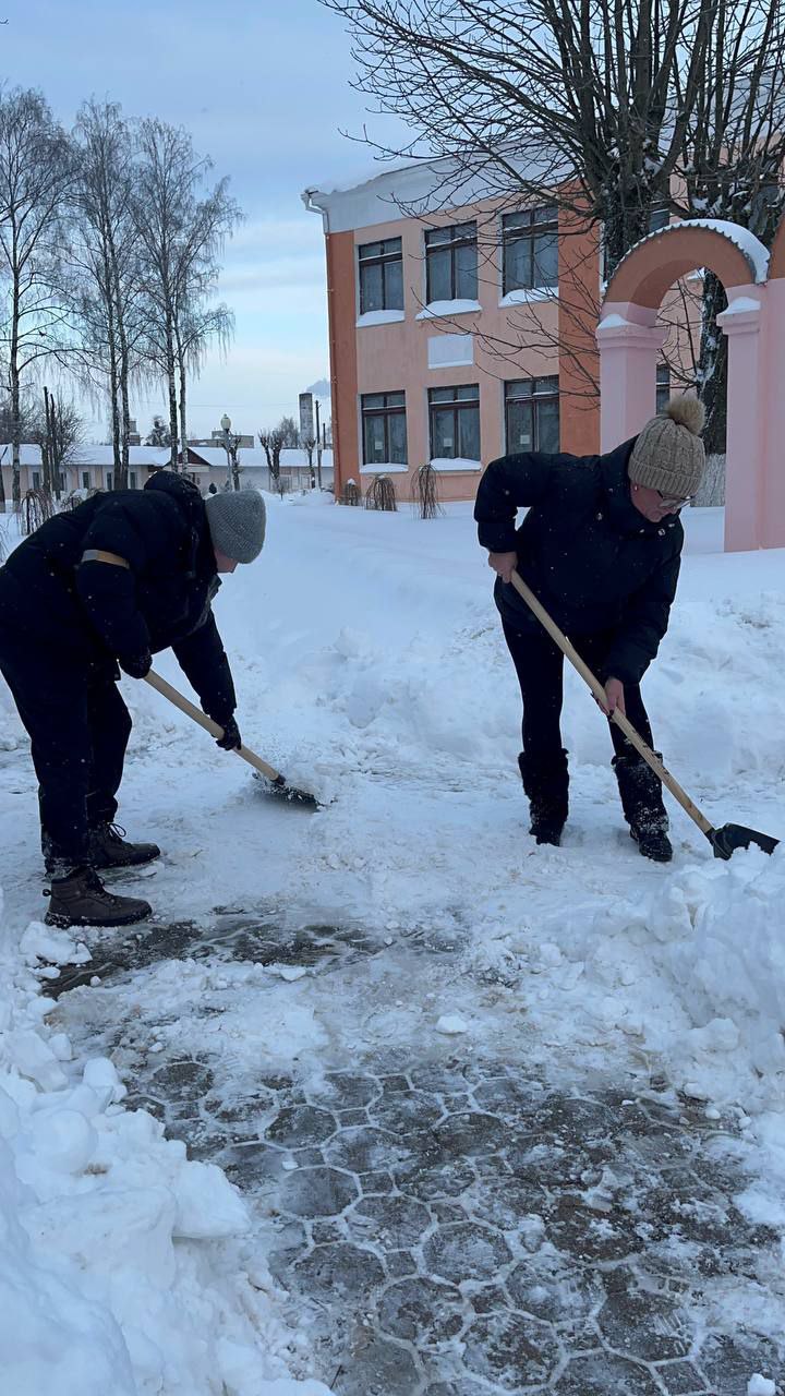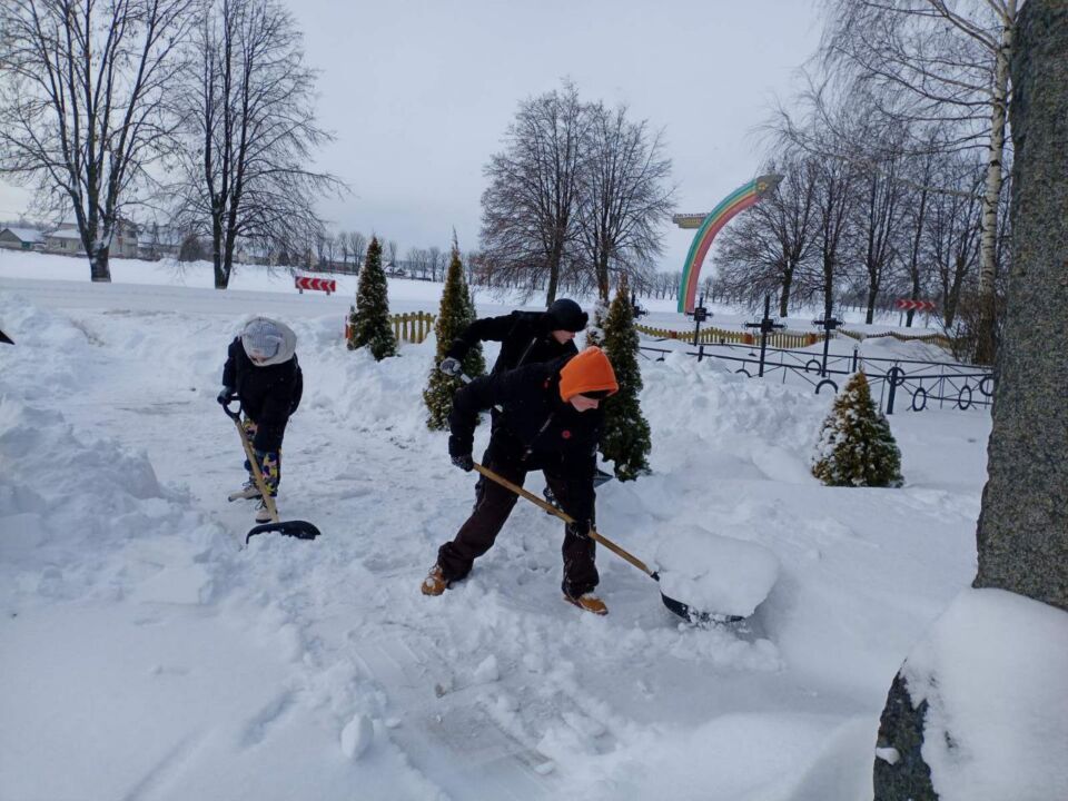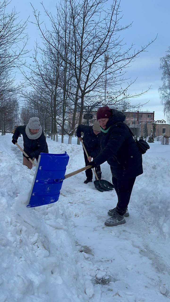 ❄️❄️❄️Коллектив Стайковской начальной школы присоединился к челленджу по уборке снега: расчистка территории учреждения, братской могилы в аг.Стайки.