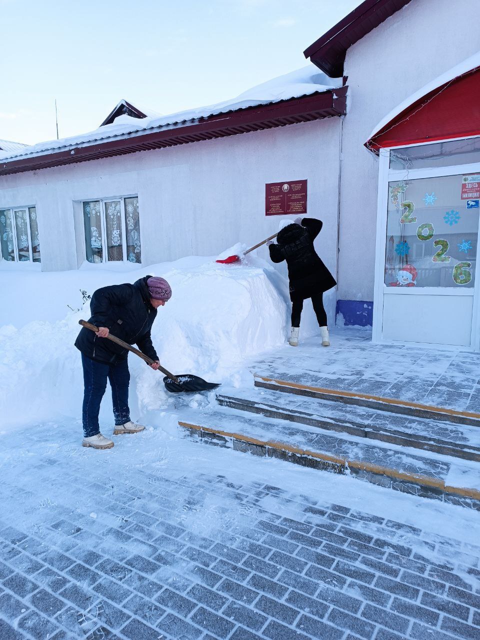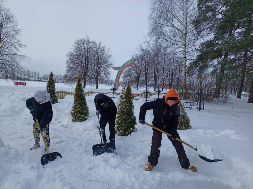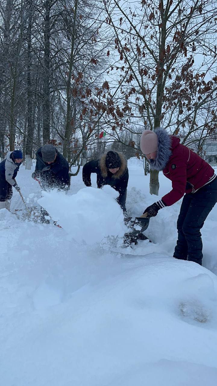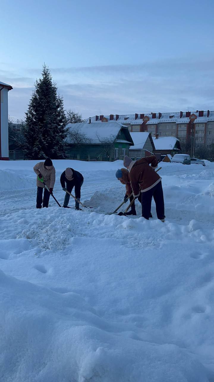 ❄️❄️❄️Коллектив Стайковской начальной школы присоединился к челленджу по уборке снега: расчистка территории учреждения, братской могилы в аг.Стайки.