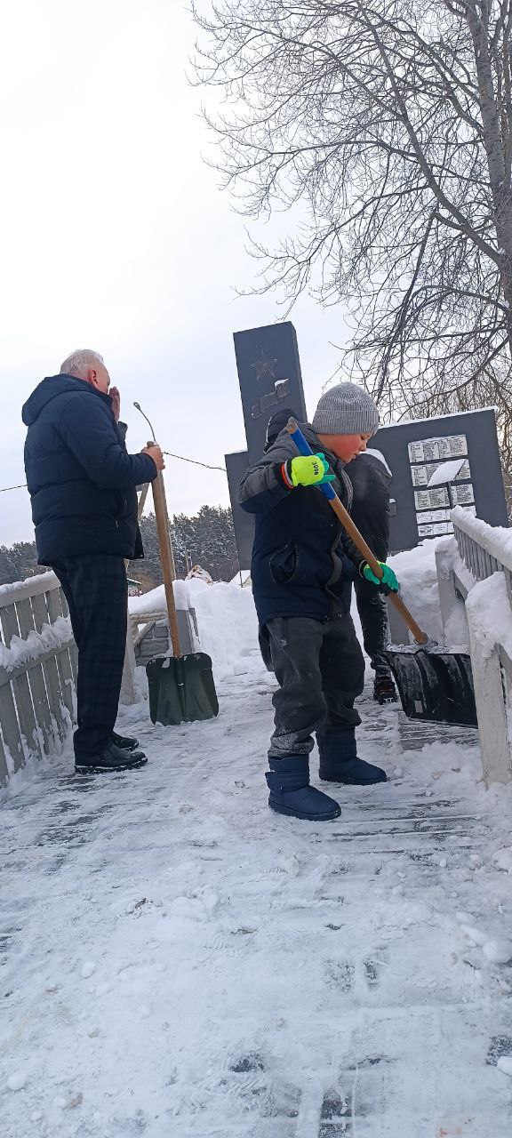 ❄️❄️❄️ Учащиеся, родители и педагоги Мышковичской средней школы расчистили Мемориал «Славы» от снега, показав, что уважение к прошлому — это не обязанность отдельных людей, а общая ответственность, объединяющая поколения.