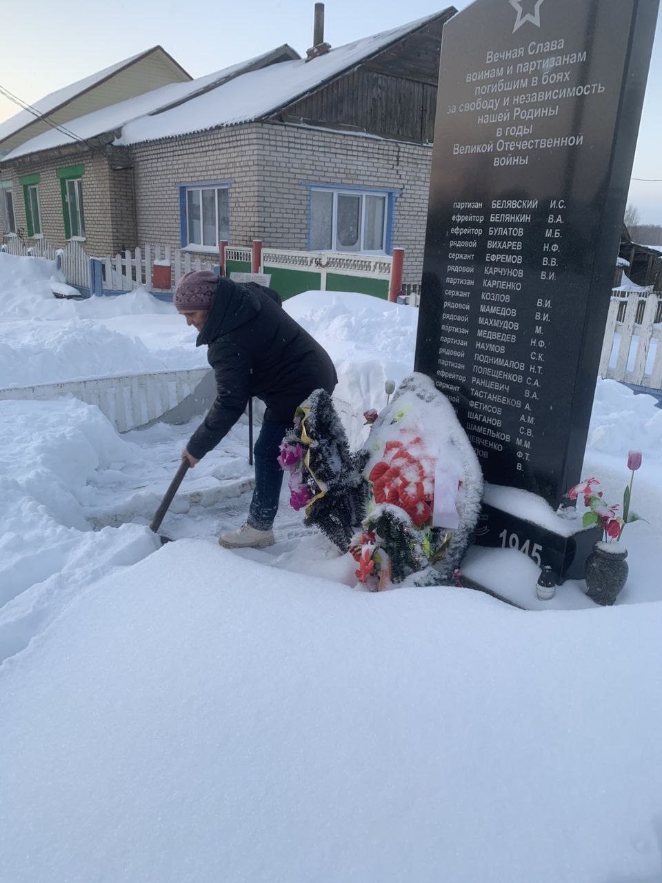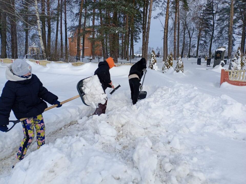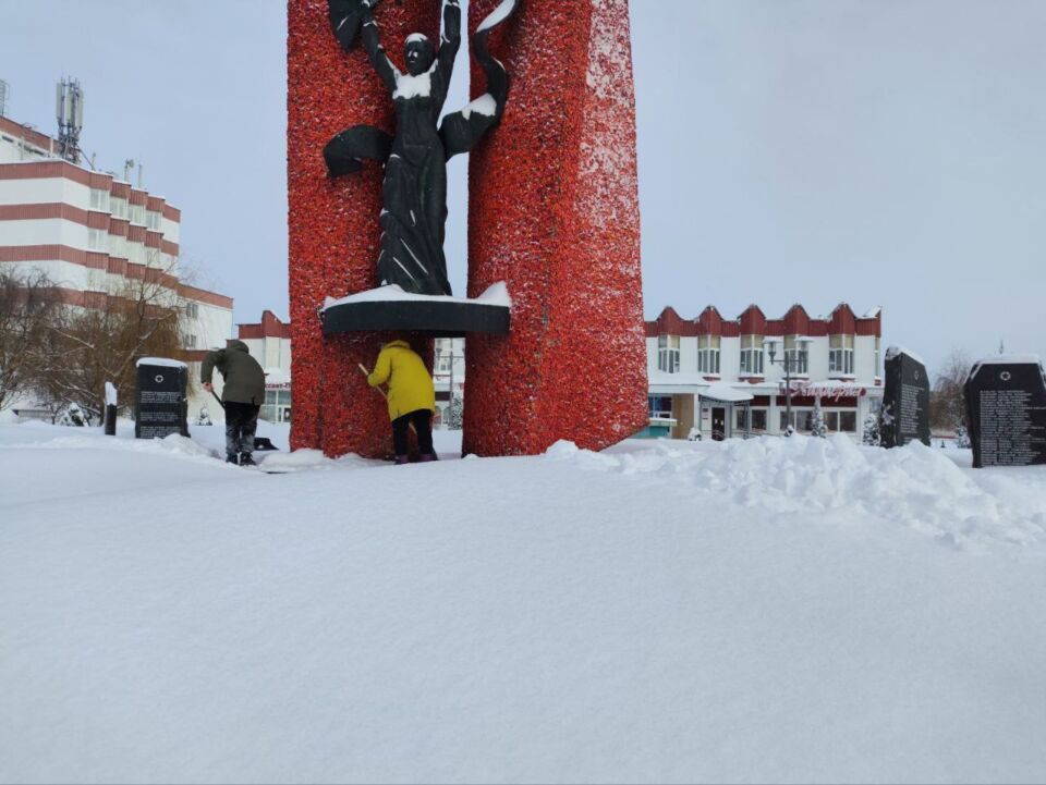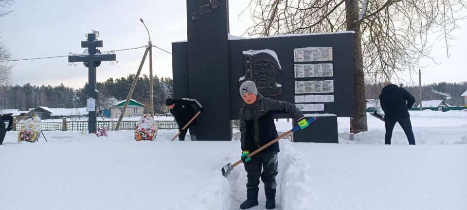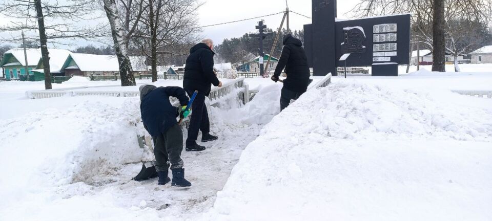 Жители агрогородка Боровица — от мала до велика — очистили от снега территорию братской могилы.
