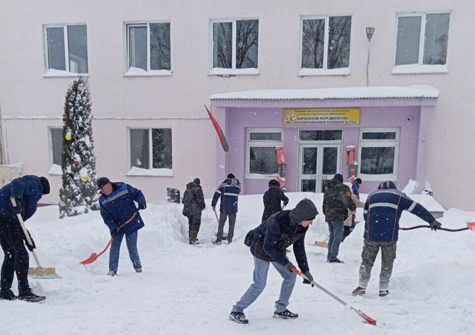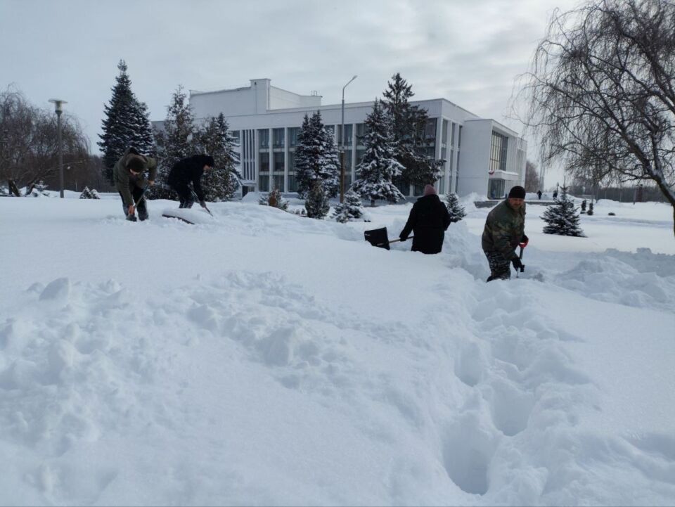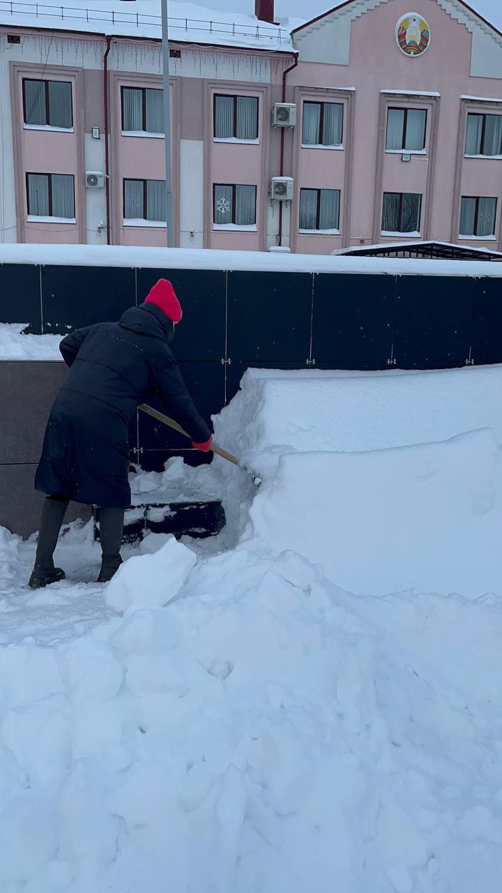 Сотрудники Кировского райисполкома приняли участие в уборке снега.