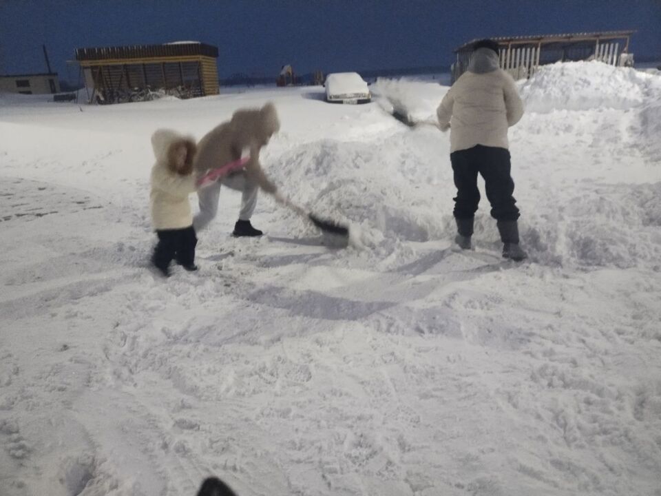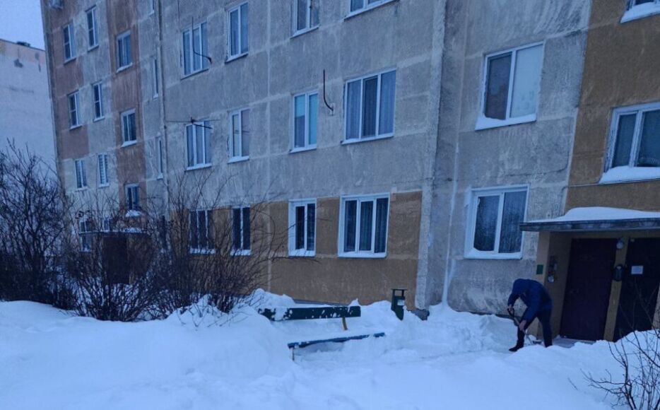 Жильцы дома №15 по улице Горького в Кировске с самого утра — на расчистке общего двора.