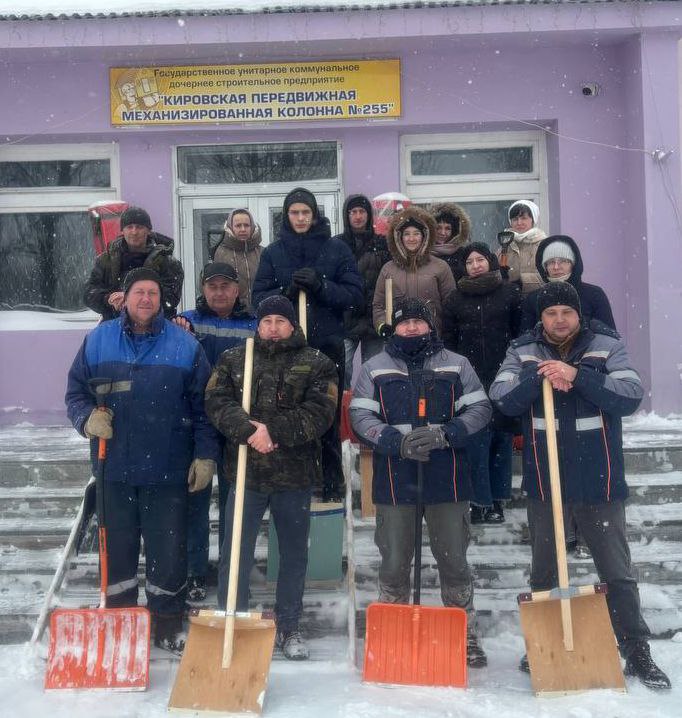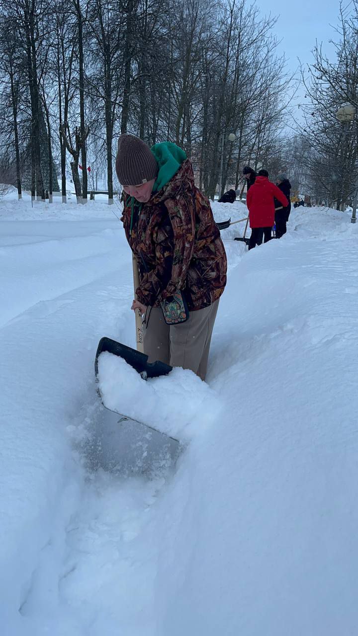 Трудовые коллективы помогают коммунальной службе расчищать тротуары по улице Советской в Кировске 💪❄️