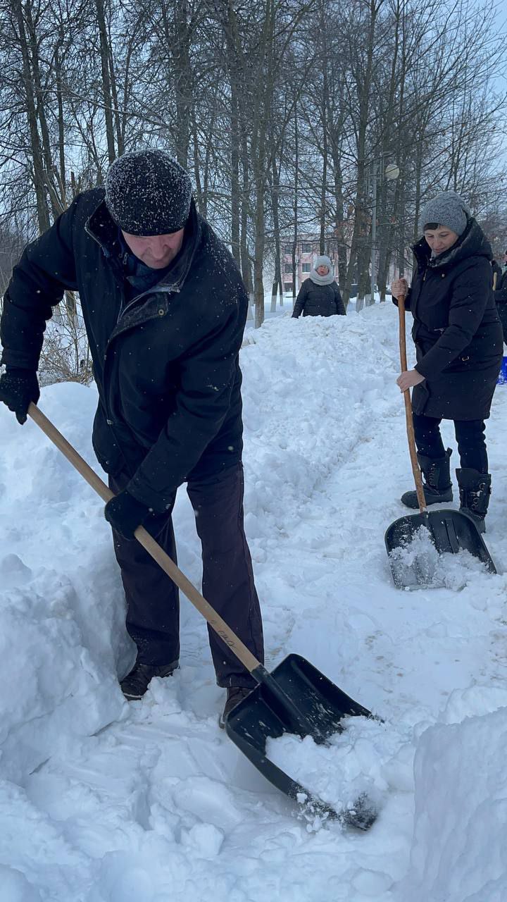 Коллективы учреждений образования, родители и учащиеся расчищали территории учреждений и помогали коммунальщикам в уборке улиц, городского парка.