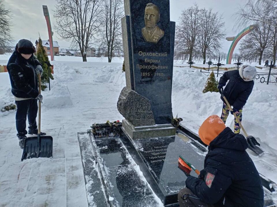 ❄️🌨❄️Учащиеся Мышковичской средней школы очистили от снега братскую могилу, могилу К П. Орловского, превратив обычный зимний день в урок мужества и памяти.