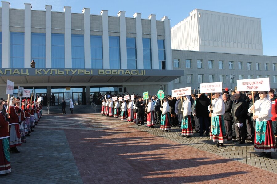 Урачыстая сустрэча афіцыйных дэлегацый перадавікоў аграпрамысловага комплексу раёнаў і гарадоў Магілёўшчыны адбылася каля Палаца культуры вобласці. Шчырыя апладысменты гучалі ў адрас лепшых сельскіх працаўнікоў Прыдняпроўскага краю.