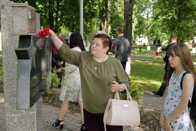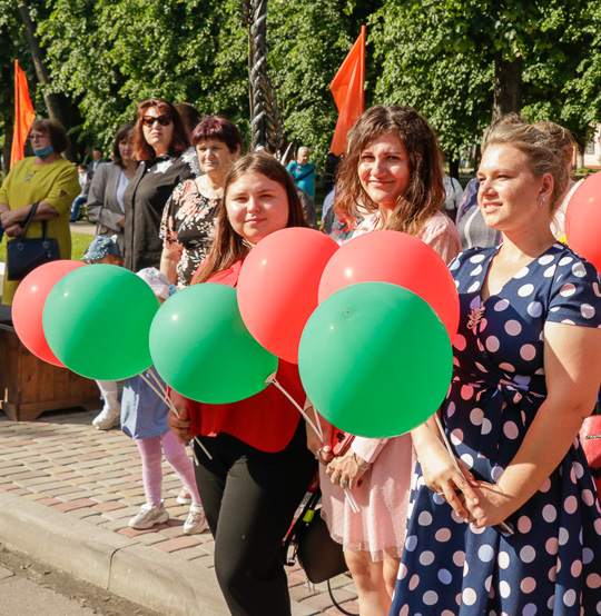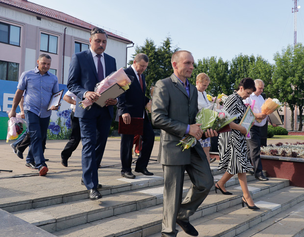Руководство района — председатель райисполкома Михаил Гулый, председатель районного Совета депутатов Галина Слабодникова, гости, Почетные граждане Кировского района, ветераны труда, руководители и представители трудовых коллективов, районных структур общественных объединений, молодежь собрались у Аллеи Славы Героев труда и воинской доблести, где прошла церемония возложения цветов.