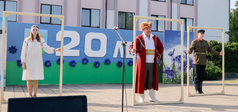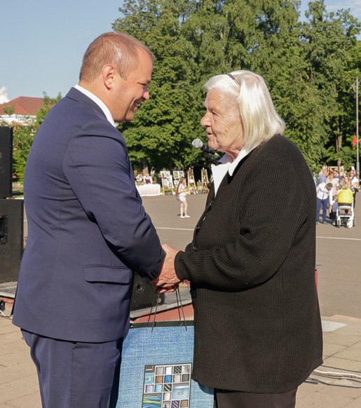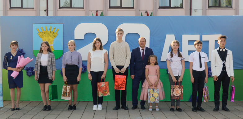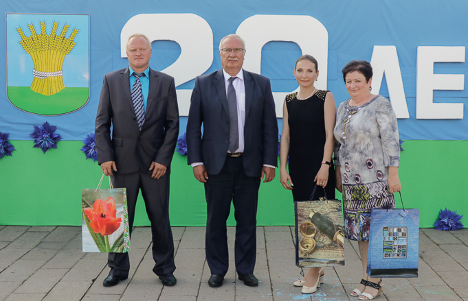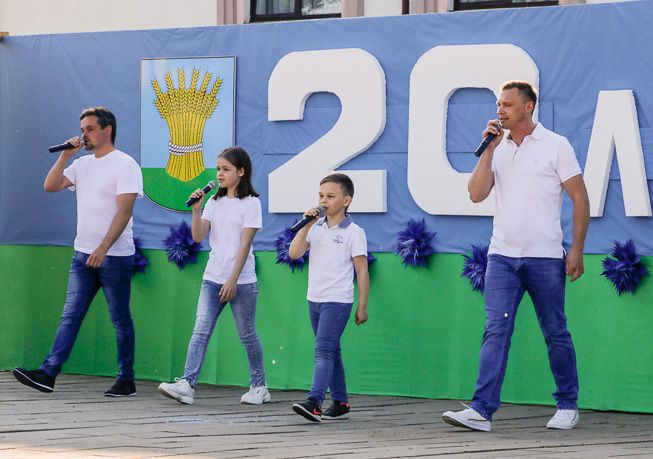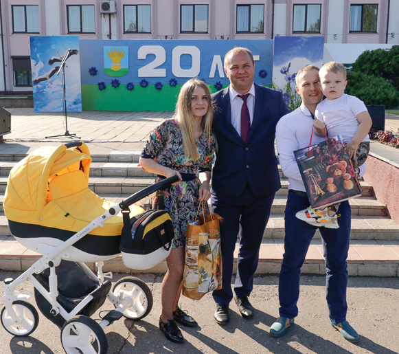 В ходе праздничной программы чествовали лучших тружеников района, старейшую жительницу города Софью Федоровну Кривонос, молодую семью Шкрадюк – в юбилейном для нашего города году их сын Глеб стал 20-м родившимся малышом.