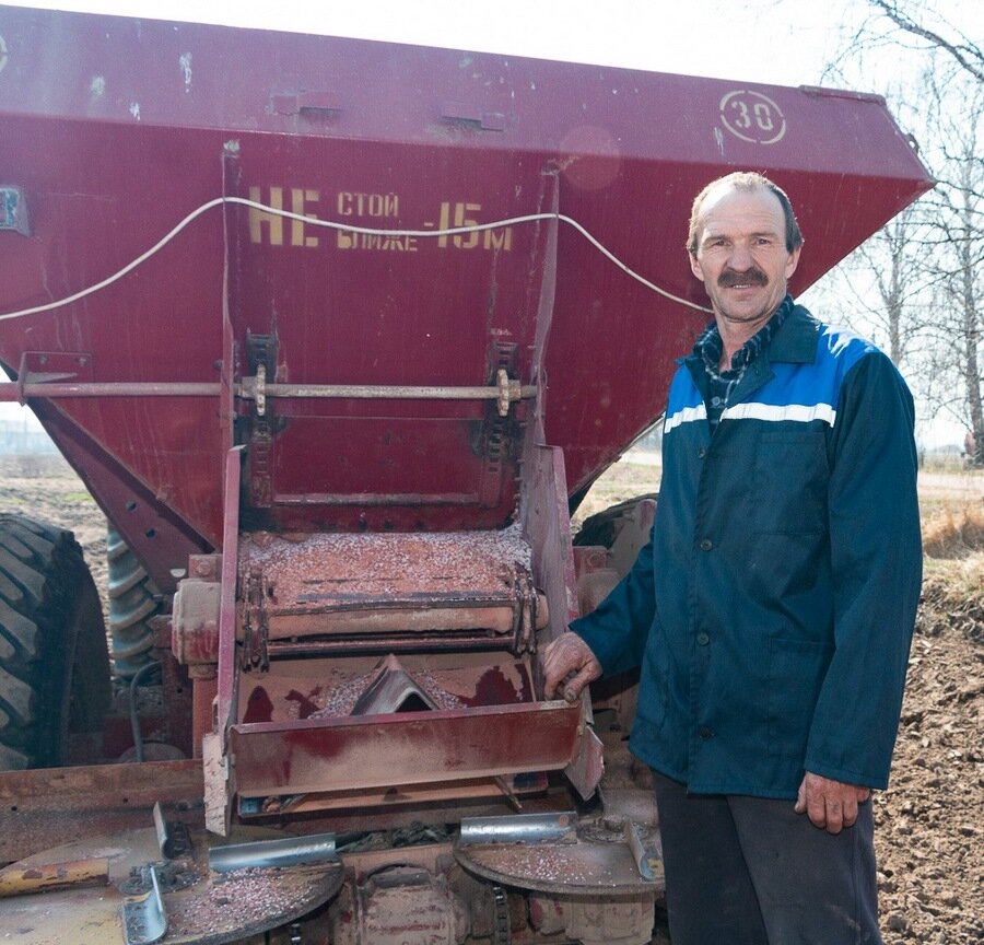 Паралельна з ім на сяўбе ячменю на іншым участку задзейнічаны Дзяніс Петрусёў. Як расказаў земляроб, працоўны дзень у іх пачынаецца рана — у 7 гадзін, у гэты час тэхніка павінна быць ужо на полі. На момант нашага наведвання Міхаіл засеяў плошчу ў 110 га, у дзень у сярэднім выходзіць па 30 га. Усё залежыць ад умоў надвор’я і спраўнасці тэхнікі, але, як адзначыў наш субяседнік, ні адно, ні другое не падводзіць. Працуюць аграрыі да самага вечара з перапынкам на абед, які ім дастаўляюць прама на месца, дзе яны знахо­дзяцца на той момант — сельгаспрадпрыемства забяспечвае ўсіх працаўнікоў на полі гарачым харчаваннем, каб праца ладзілася ў тэрмін.