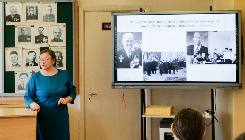 Валентина Яскевич отметила, что среди тех, кто встал на защиту Родины, были люди разных профессий, в том числе и педагоги. В нашем районе 128 учителей стали участниками войны. Среди них – Иван Федорович Коноплев – первый директор СШ №2 им. К.П.Орловского (во время войны был участником обороны Ленинграда), Михаил Михайлович Ярчак, благодаря усилиям которого в учреждении образования с 1965 года и до сегодняшних дней действует историко-краеведческий музей, и другие.