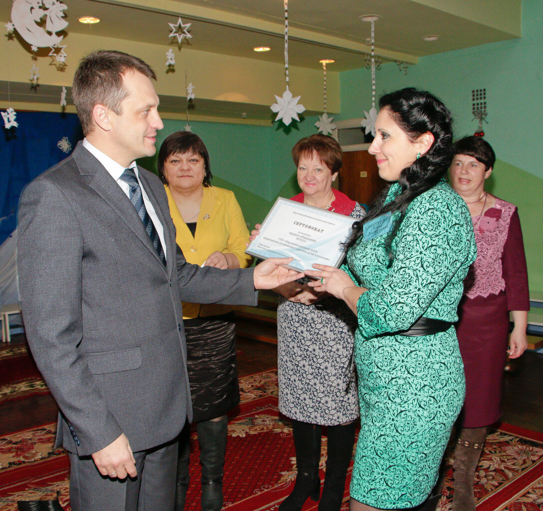 У раённым цэнтры карэкцыйна-развіваючага абучэння і рэабілітацыі напачатку мерапрыемства госці прыпаднеслі кожнаму дзіцяці падарункі: набор цукерак і развіваючыя гульні. Кіраўнік раёна ўручыў сертыфікат на гульнявое абсталяванне дырэктару ўстановы Алене Каранкевіч, а прадстаўнік раённай газеты — сертыфікат на падпіску на першы квартал 2016 года.