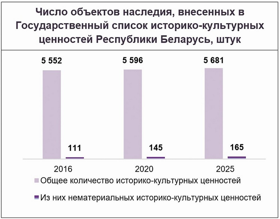 Будет увеличена доступность услуг культуры. Планируется создание электронных каталогов историко-культурных памятников Республики Беларусь и разработка онлайн-площадки для демонстрации культурных событий.