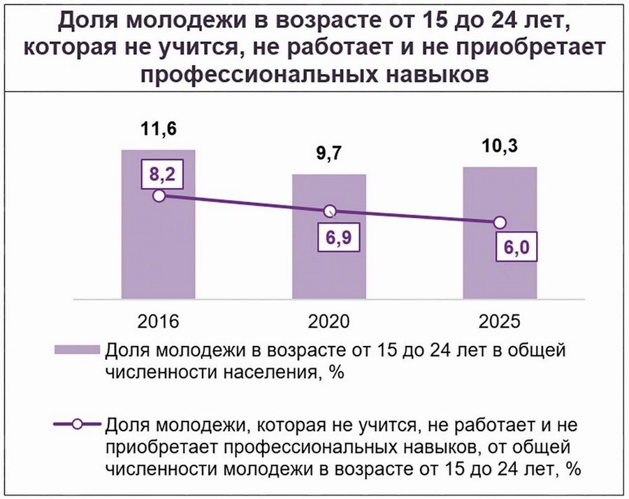 усиление гражданско-патриотического воспитания молодежи, содействие формированию культурных и нравственных ценностей. Молодежь будет активнее вовлечена в процесс принятия управленческих решений, в том числе через формирование резерва молодых руководящих кадров.