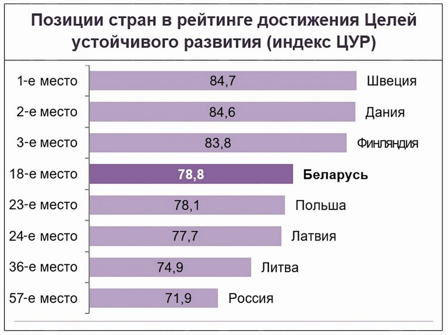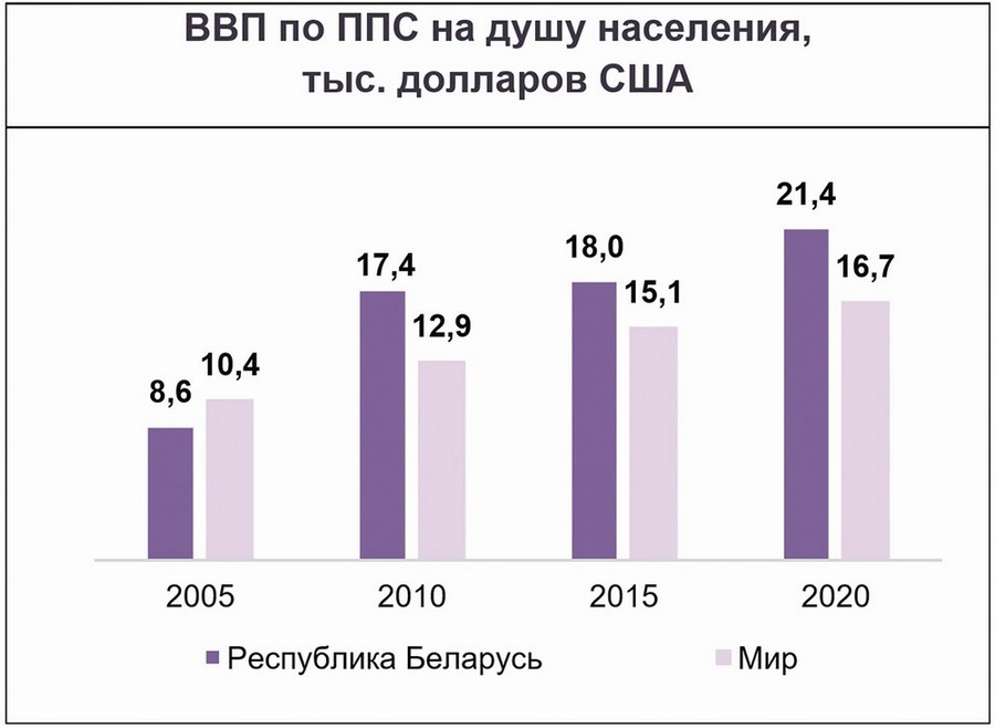Белорусы стали жить лучше. В мировом рейтинге достижения 17 взаимосвязанных и неразделимых целей в области устойчивого развития, призванных преобразовать наш мир, Беларусь заняла 18-ю позицию среди 166 стран. ВВП на душу населения по паритету покупательной способности возрос за пятилетие на 16 процентов и достиг в 2020 году почти 21 тысячи долларов США. В стране обеспечена стабильная занятость населения, реальная заработная плата за пятилетие выросла более чем в 1,3 раза. По индексу человеческого капитала Всемирного банка мы вошли в топ-40, заняв 36-е место из 174 государств по уровню производительности труда нового поколения работников.