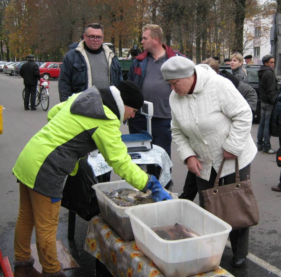 Зноў стаяла чарга каля прылаўка СВК “Рассвет” імя К.П.Арлоўскага: усе жадаючыя ахвотна набывалі жывую рыбу. Дарэчы, яе рэалізавана за ўсе 5 кірмашоў амаль 1000 кг!