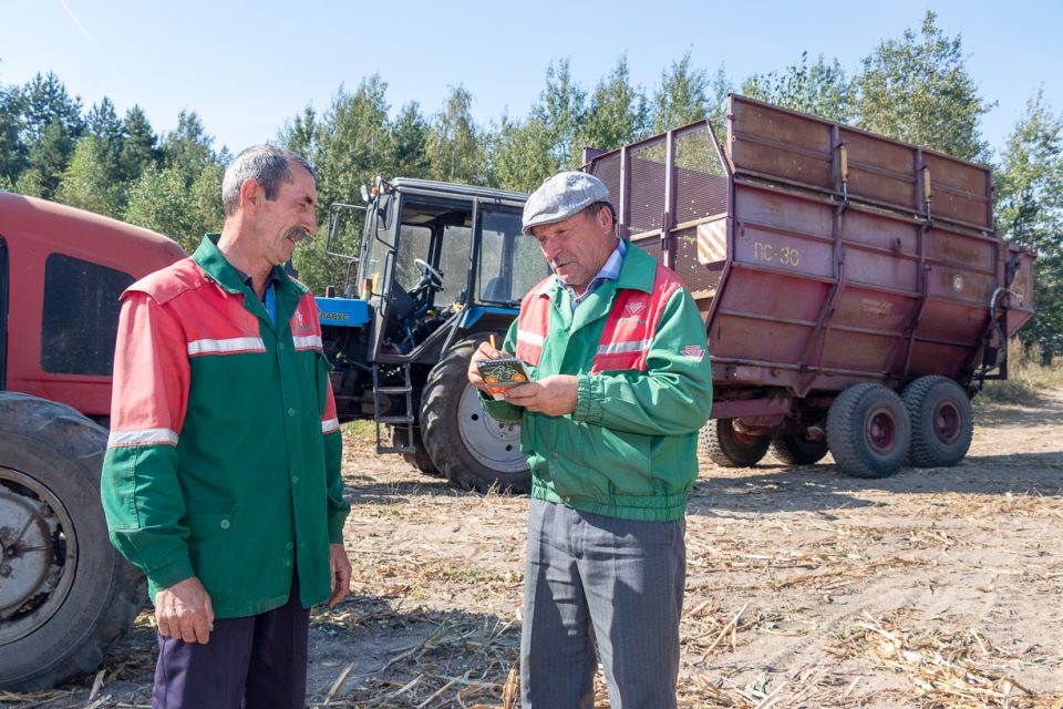Для таго, каб кансервацыя сіласнай масы была з максімальным захоўваннем пажыўнасці корму кукуруза павінна быць правільна здробнена (вышыня яе нарэзкі павінна складаць 3-5 см), менавіта таму, уборку і здрабненне даверылі аднаму з вопытных механізатараў Дзмітрыю Конюхаву.