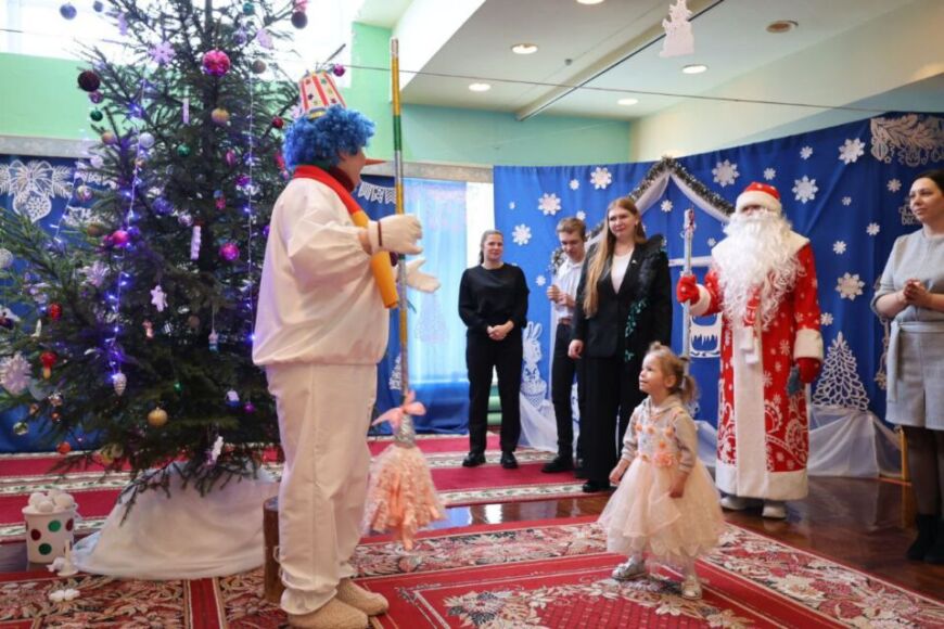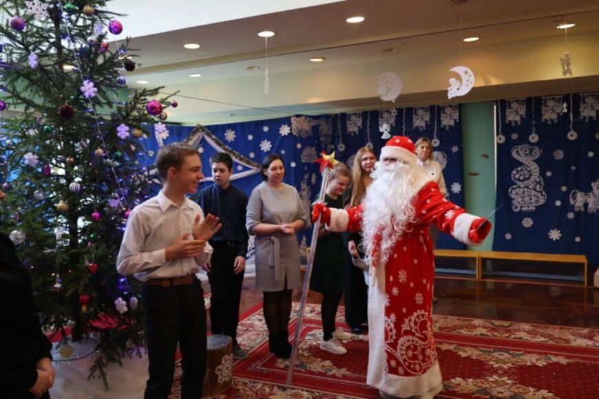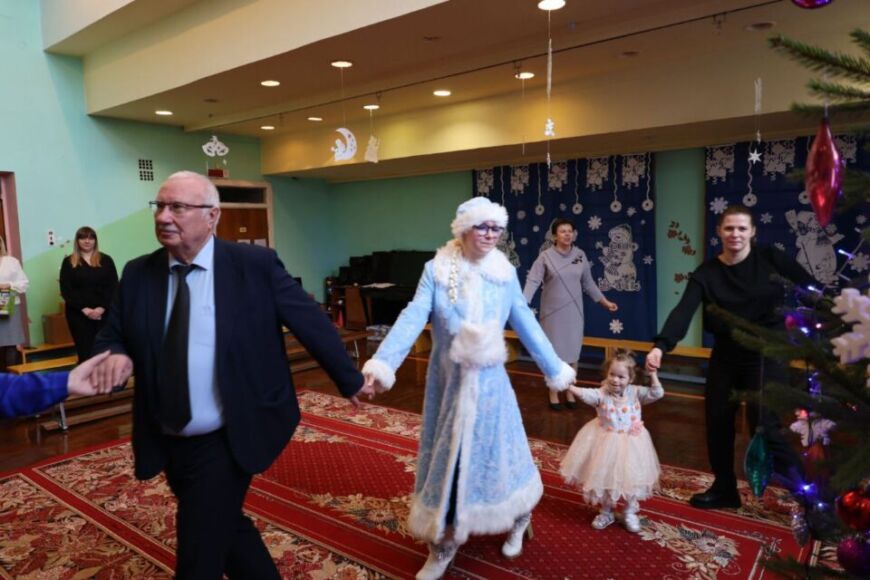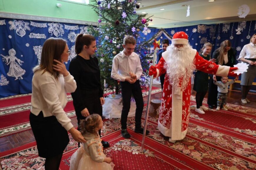 Дети и коллектив центра радостно встречали гостей, принимая поздравления и подарки. Вместе с Дедом Морозом и Снегурочкой они водили хоровод, делились искренними эмоциями.