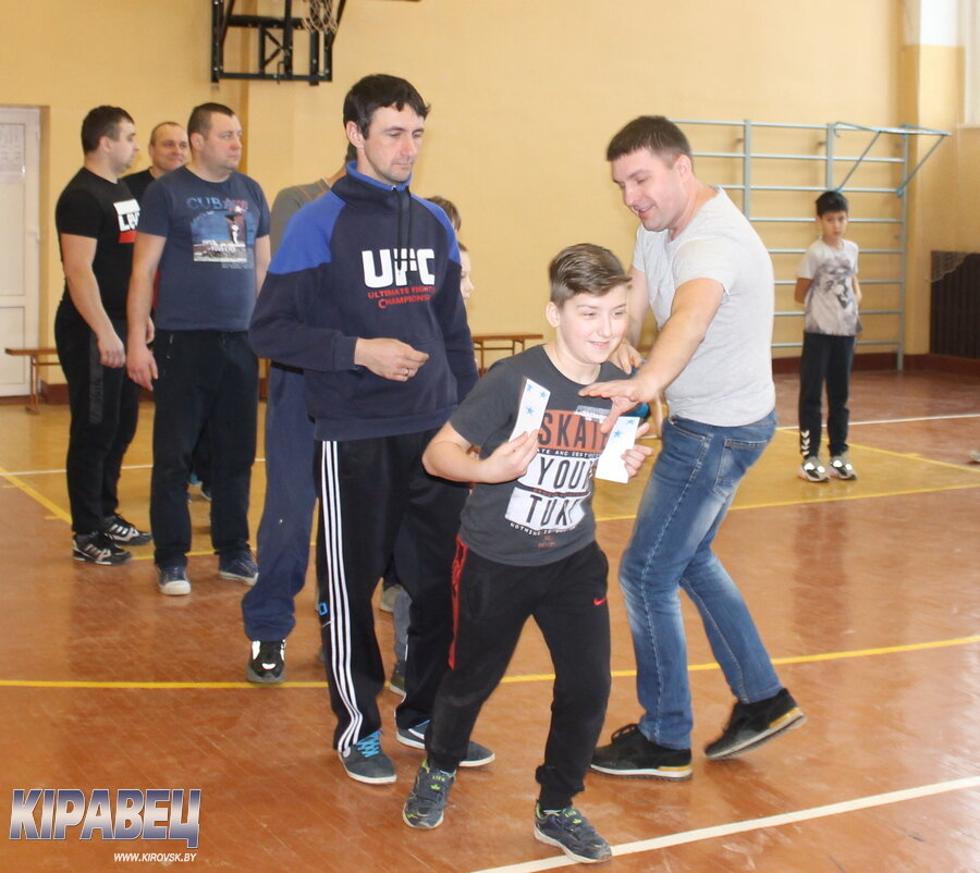 Очередное мероприятие в рамках проекта «ПапаЗал» провели в канун Дня защитников Отечества в СШ №1. За призы от райкома  ОО «БРСМ» боролись активные папы и их дети, учащиеся этого учебного заведения.