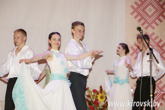 В 18.00 в концертном зале «Могилев» состоялась концертная программа «Многоцветие талантов», в которой приняли участие лучшие творческие коллективы и солисты Кировского района. В их числе — народный ансамбль народной песни «Мілавіца», вокальный ансамбль «Родные голоса», образцовый хореографический коллектив «Поскакушки» и другие.