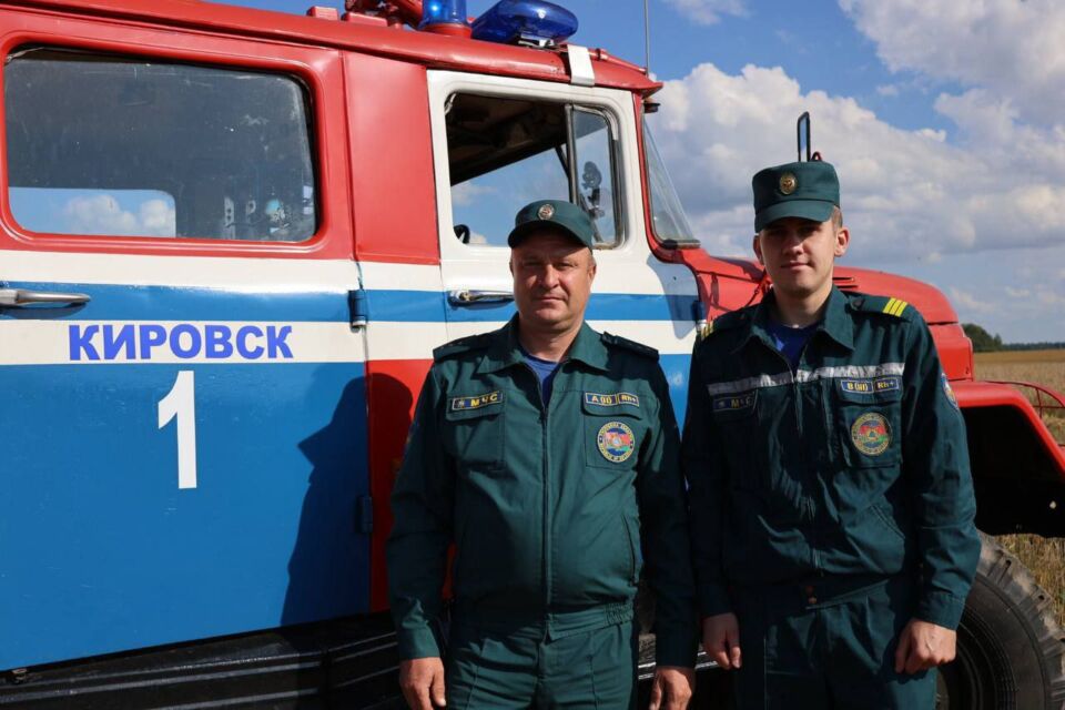 Сотрудники Кировского РОЧС обеспечивают пожарную безопасность во время уборочных работ.