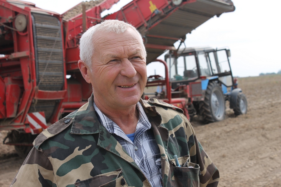 — Ураджай бульбы сёлета радуе, што і казаць! — з задавальненнем і добрым настроем адзначыў спецыяліст. — Можаце самі ацаніць: клубні практычна ўсе буйныя — адзін у адзін. Трактару з камбайнам дастаткова праехаць па барознах метраў 100 — і 4-тонны бункер ужо напоўнены. З кожнага гектара атрымліваем па 500 цэнтнераў, а на асобных участках нават і больш. Летась ураджай быў істотна меншым.