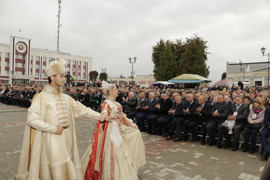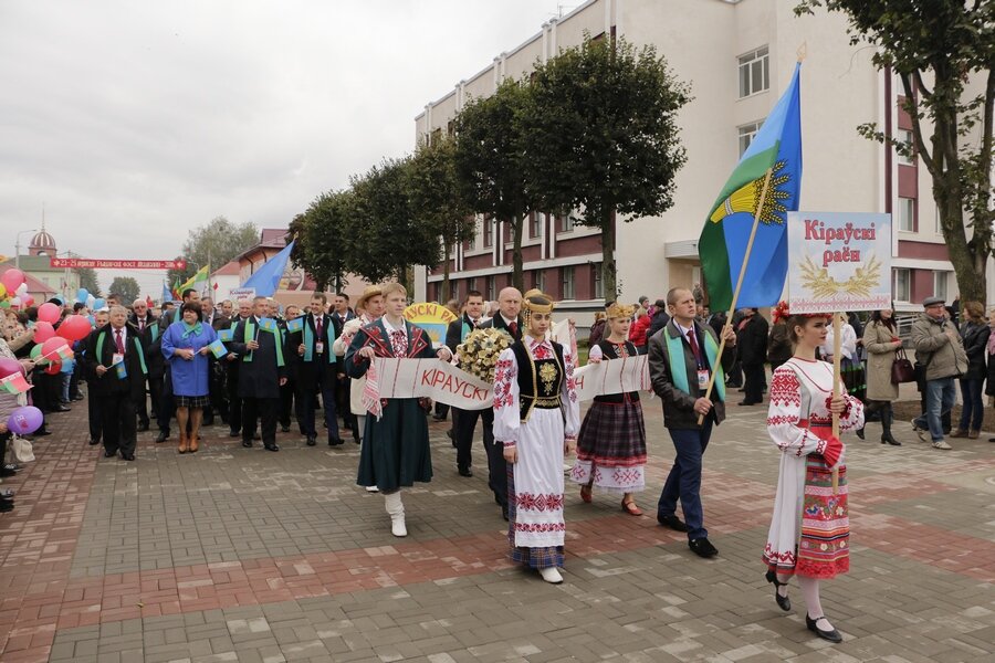 Урачыстым, маляўнічым было святочнае шэсце афіцыйных дэлегацый раёнаў па вуліцы Савецкай да галоўнай сцэнічнай пляцоўкі на плошчы імя Пятра Мсціслаўца. На чале кожнай дэлегацыі заслужаныя людзі рэгіёнаў неслі духмяныя караваі — вянец руплівай працы хлебаробаў. Кіраўчан вылучалі традыцыйныя яркія шарфы, выкананыя ў колерах флага раёна, а таксама флажкі, якімі яны салютавалі жыхарам Мсціслава, гасцям фестывалю-кірмашу.