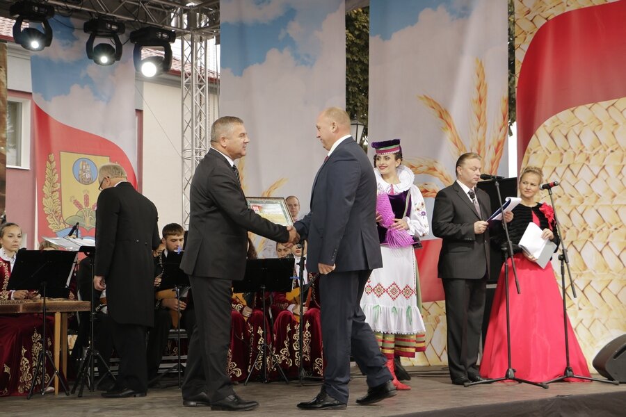 Ганаровую грамату рэспубліканскага камітэта Беларускага прафсаюза работнікаў АПК яго старшыня Мікалай Лабушаў уручыў старшыні СВК “Рассвет” імя К.П.Арлоўскага Аляксандру Багелю.