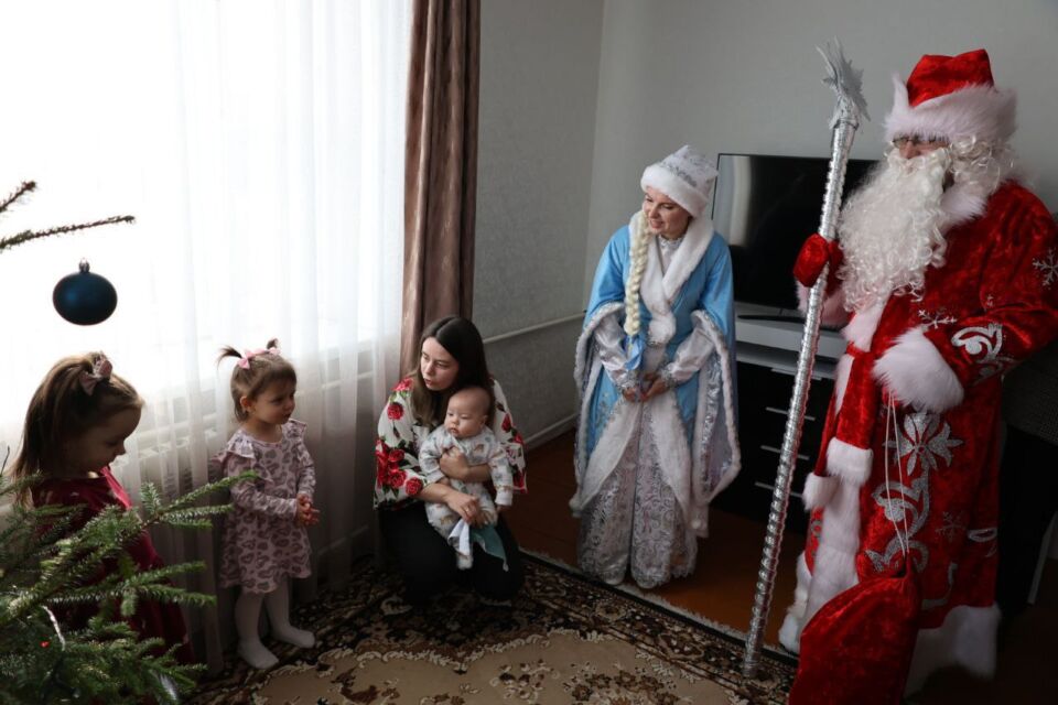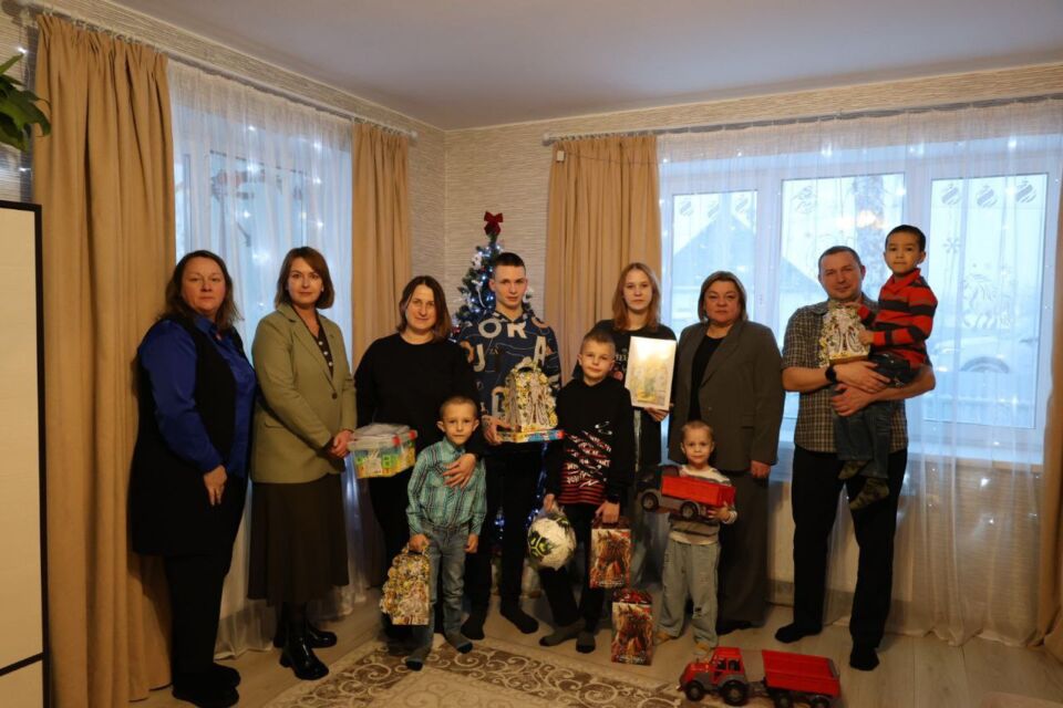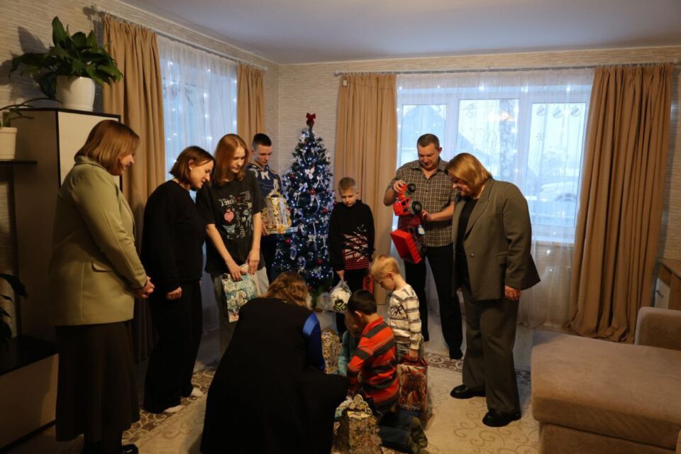 Их многодетную семью с наступающим Новым годом поздравили почётные гости: председатель райисполкома Галина Слабодникова, председатель районного Совета депутатов Елена Сакадынец и заместитель председателя райисполкома Татьяна Белявская.