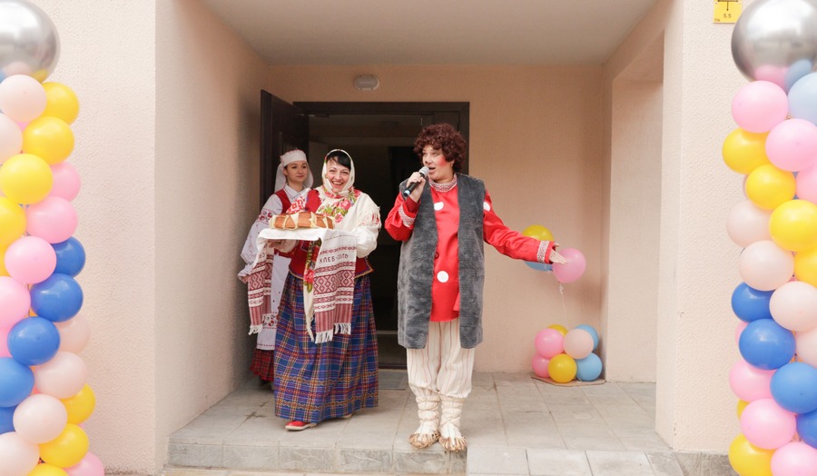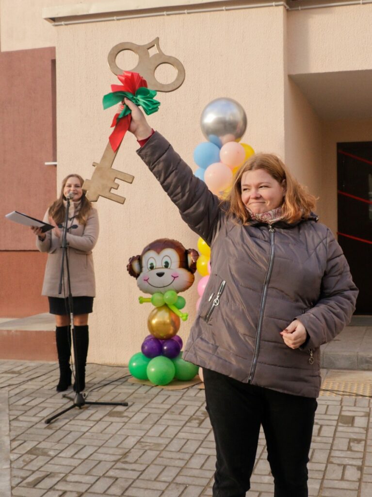 Марии Князевой был вручен символический ключ от нового дома, а также рушник – символ гостеприимства хозяев дома. Затем Галина Слабодникова вручила каждой многодетной семье ключи от новой квартиры.